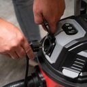 Odkurzacz Lehmann posiada zintegrowane gniazdo do elektronarzędzi o mocy do 2000W. To pozwala na jednoczesne zasilanie narzędzi i odsysanie pyłu, zapewniając czyste miejsce pracy bez dodatkowych przedłużaczy.