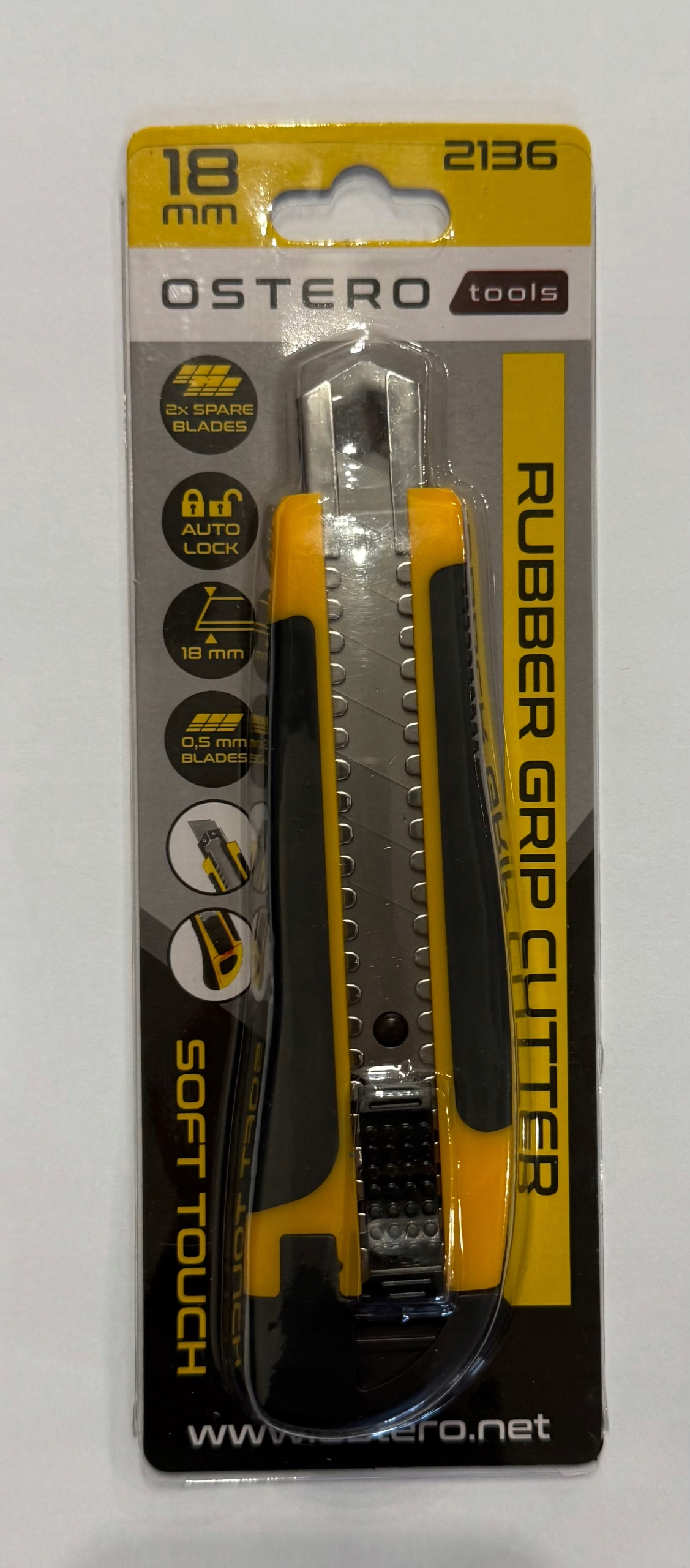 Nóż do Tapet Ostero Tools 18 mm – Gumowany, Soft-Touch, Automatyczna Blokada + 2 Ostrza Gratis