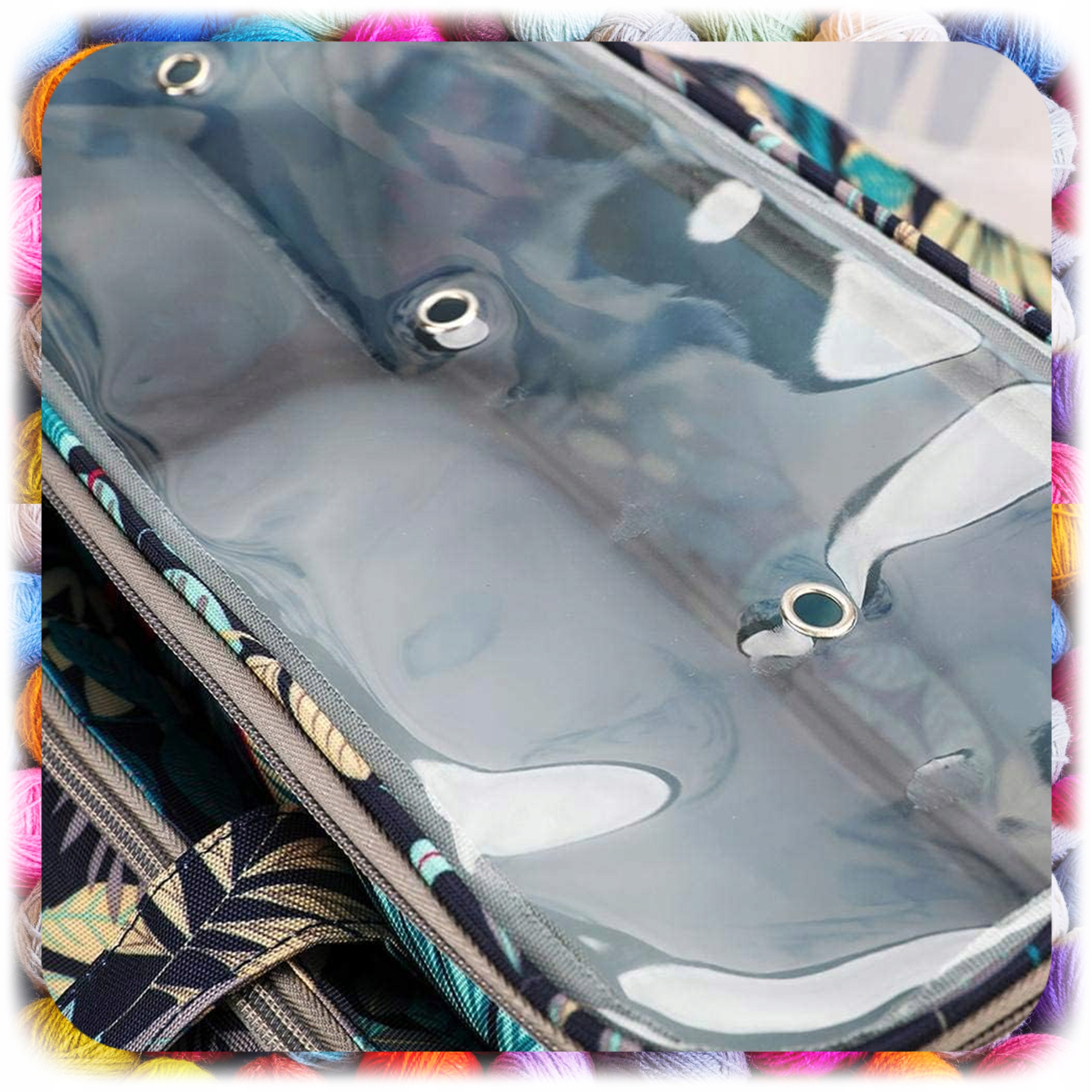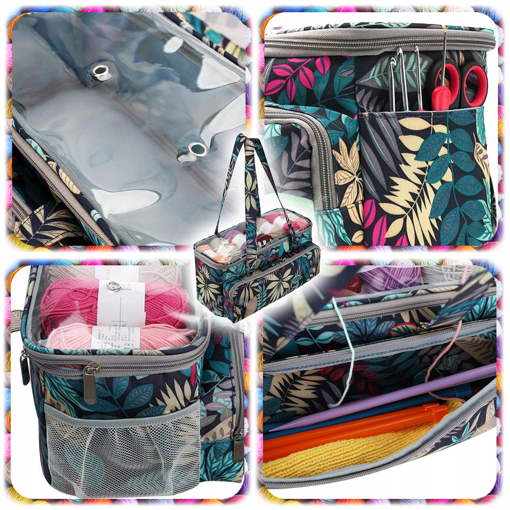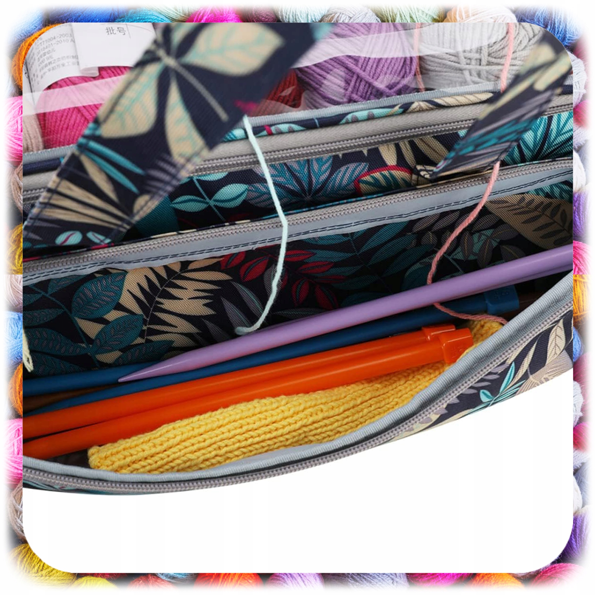 ✨ Przednia kieszeń na suwak – idealna na szydełka, druty, nożyczki, igły i inne drobiazgi.