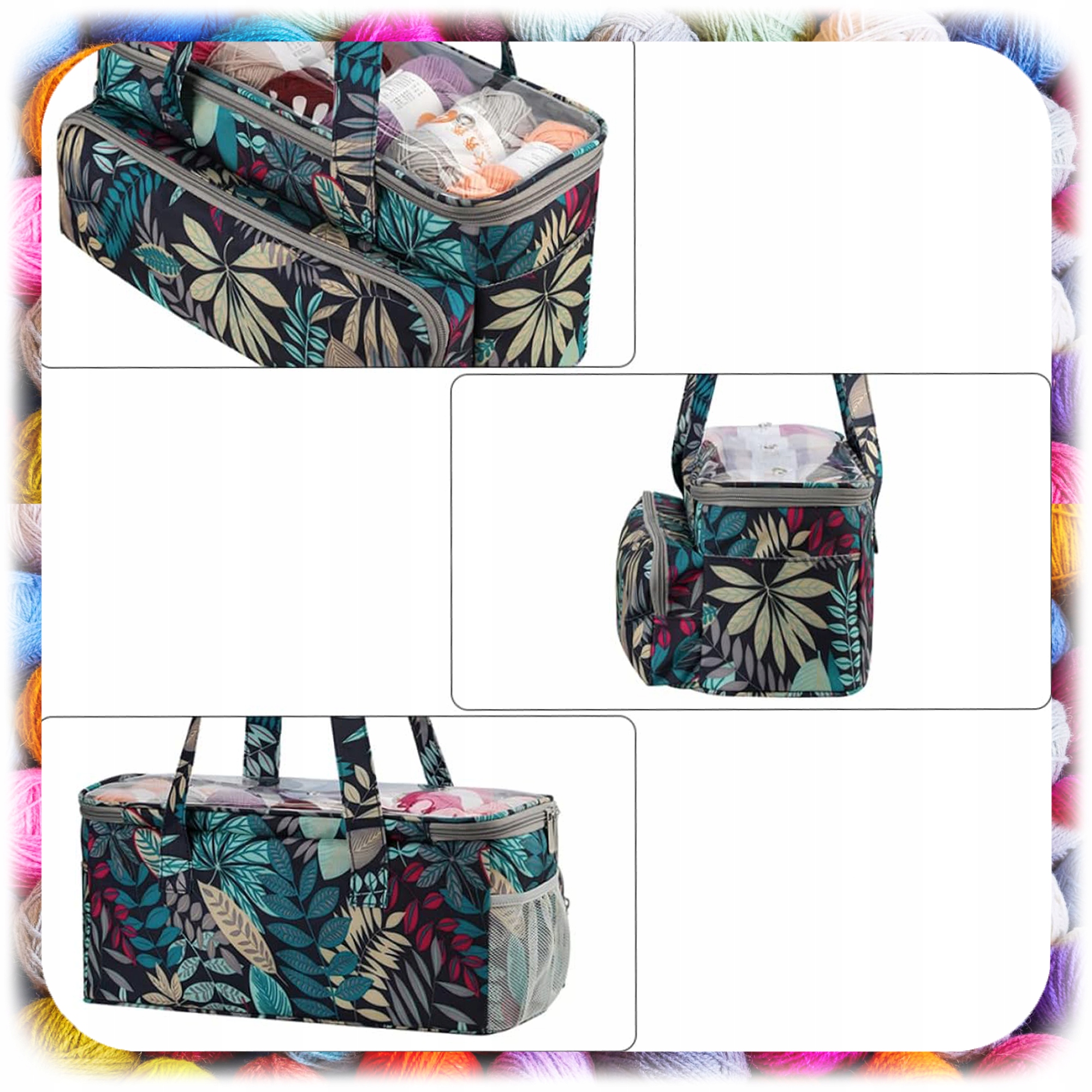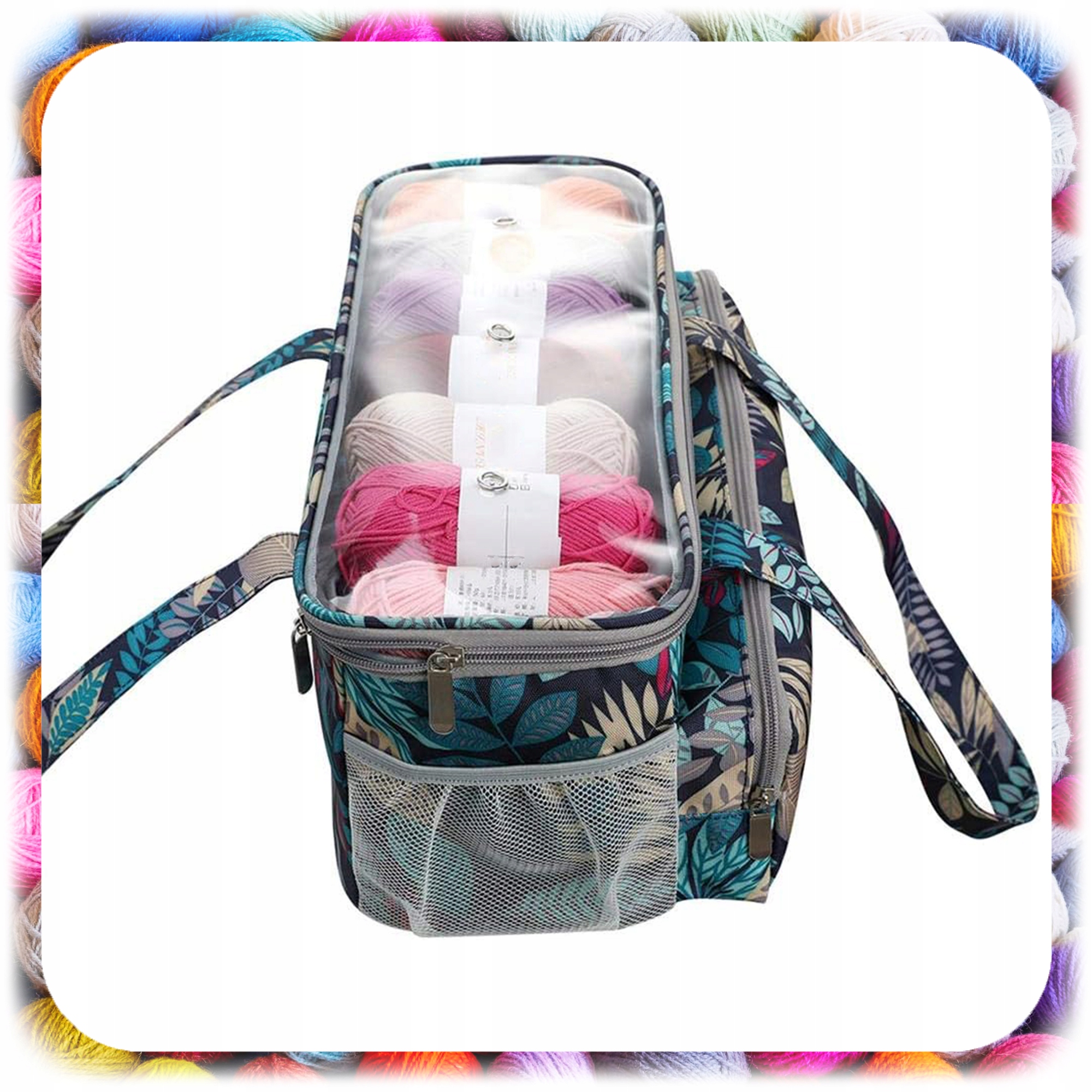 ✨ Duża komora główna – pomieści kilka dużych motków włóczki oraz niezbędne akcesoria.