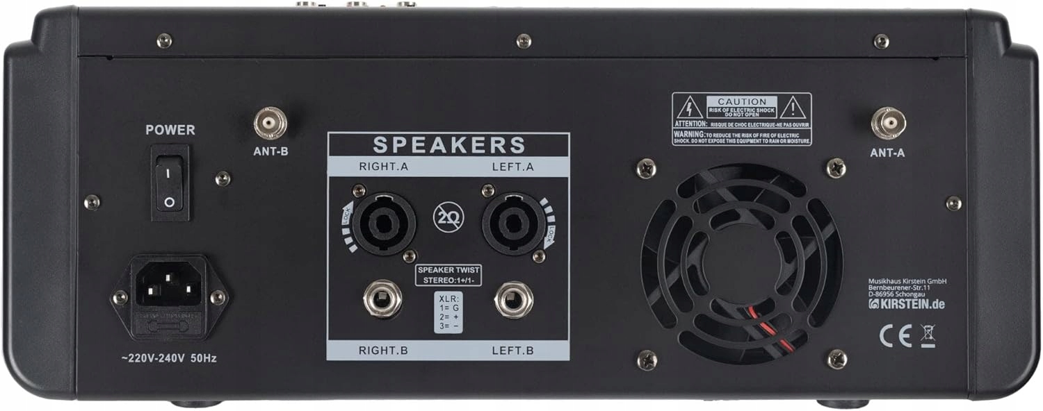Wejścia: Return (jack 6,3 mm, symetryczny) Wyjścia: Telefony (jack stereo 6,3 mm), AUX (jack mono 6,3 mm, symetryczny), FX (6,3 mm mono jack, symetryczny) Możliwość włączenia + 48 V zasilanie fantomowe, wyświetlacz poziomu 2x 10 segmentów LED Master Volume lewo/prawy