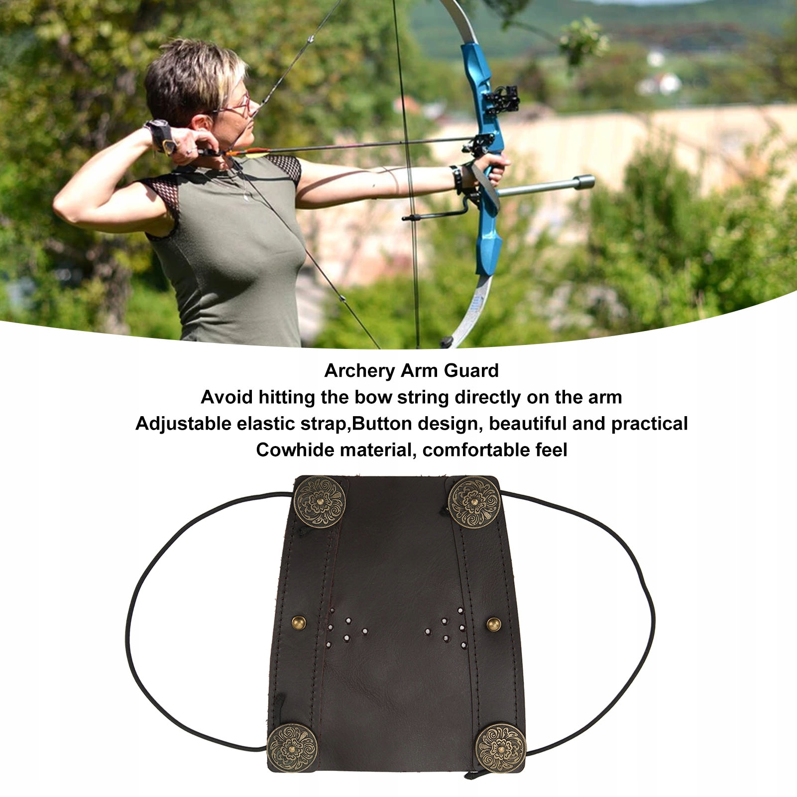 1. Główna funkcja: Ten osłona ramienia służy do polowania lub strzelania, aby zapobiec bezpośredniemu uderzeniu w ramię, zapewniając dobrą ochronę.