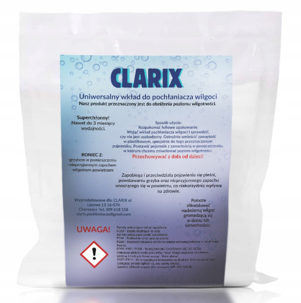 Wkład do pochłaniacza usuwa nadmiar wilgoci z powietrza, a następnie zmienia ją w płyn. Działa od razu po rozpakowaniu, zawartość po pewnym czasie ( od tygodnia do trzech ) zamienia się w bryłę, następnie zaczyna się skraplać do pojemnika.