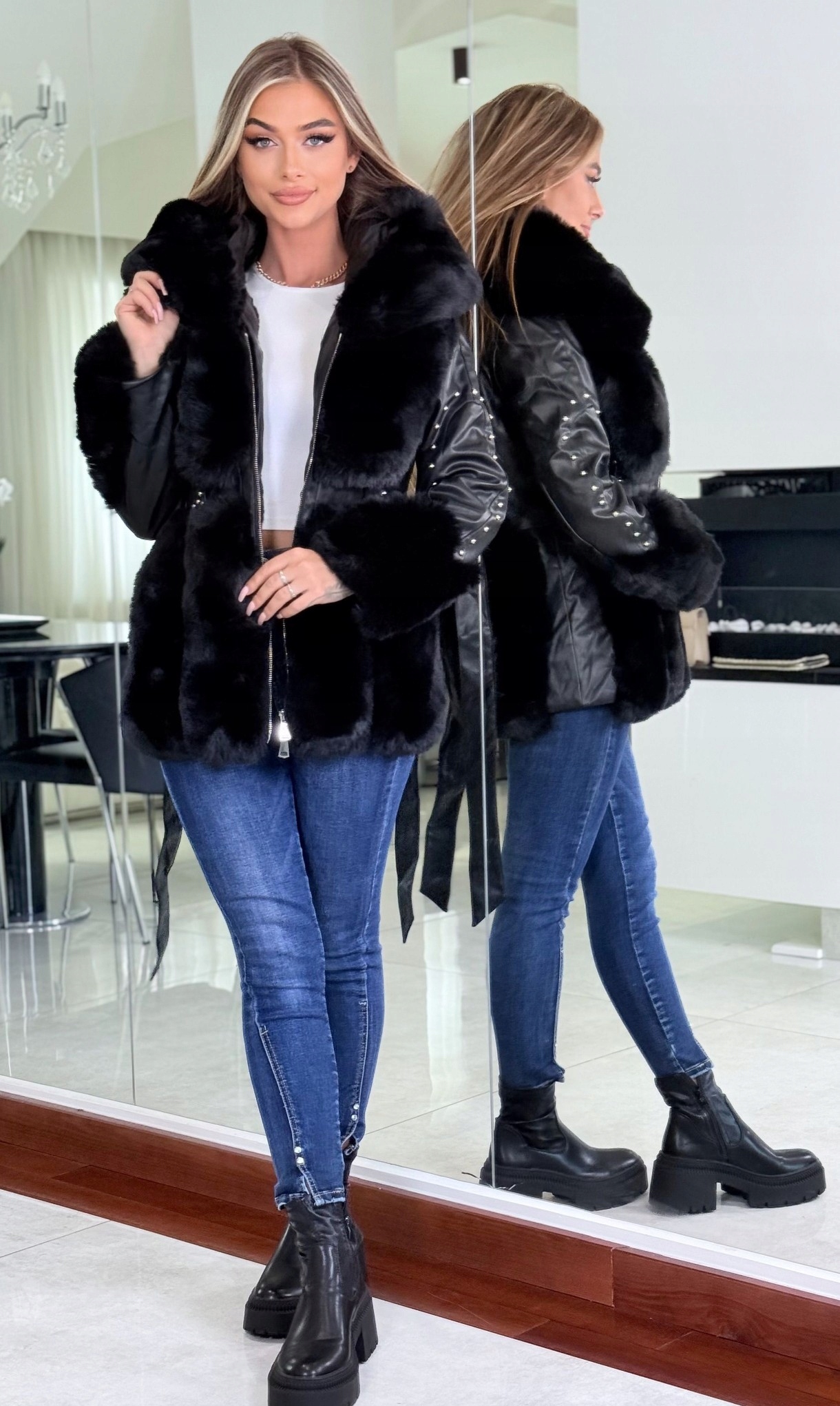 Модель krótka, futerko z ecoskórką