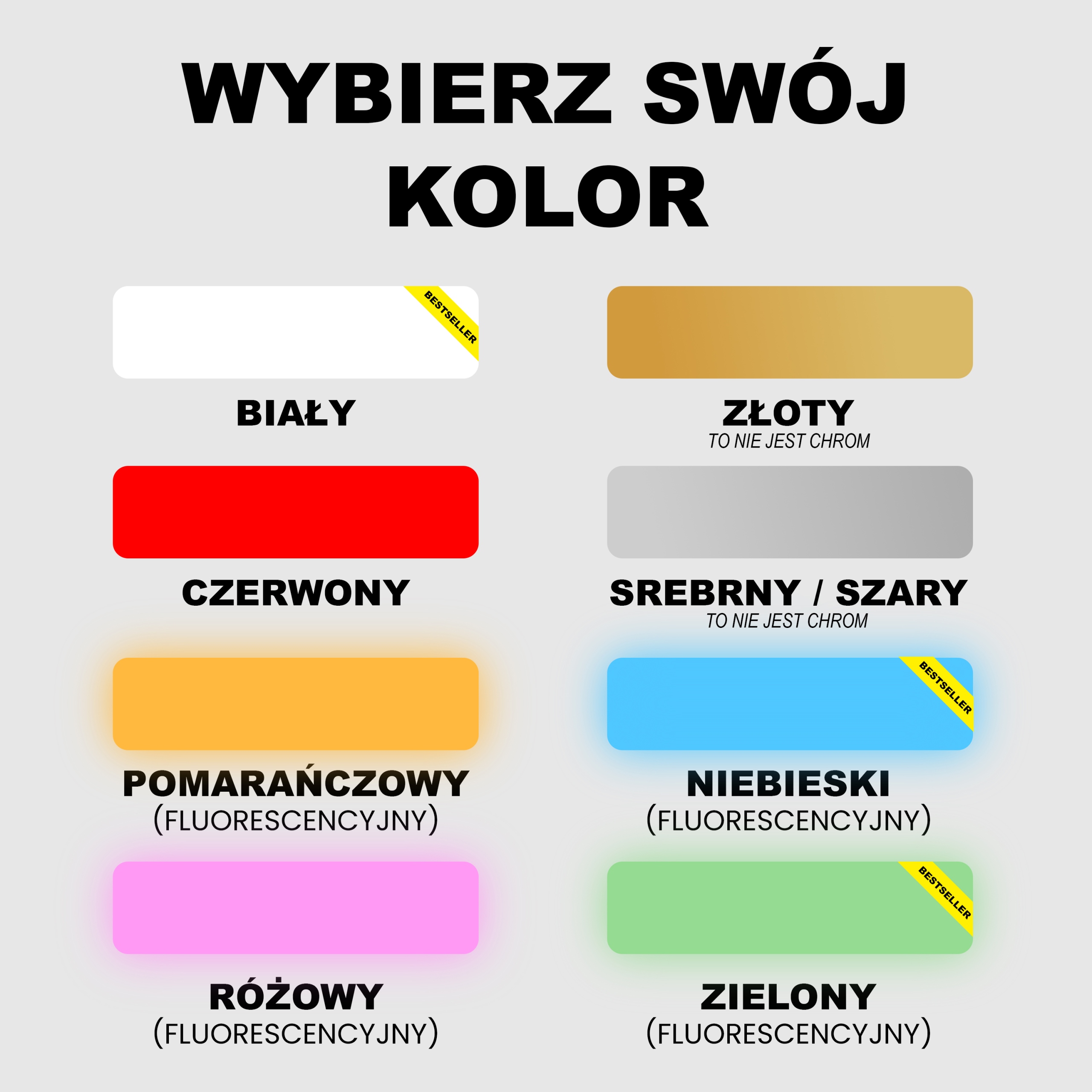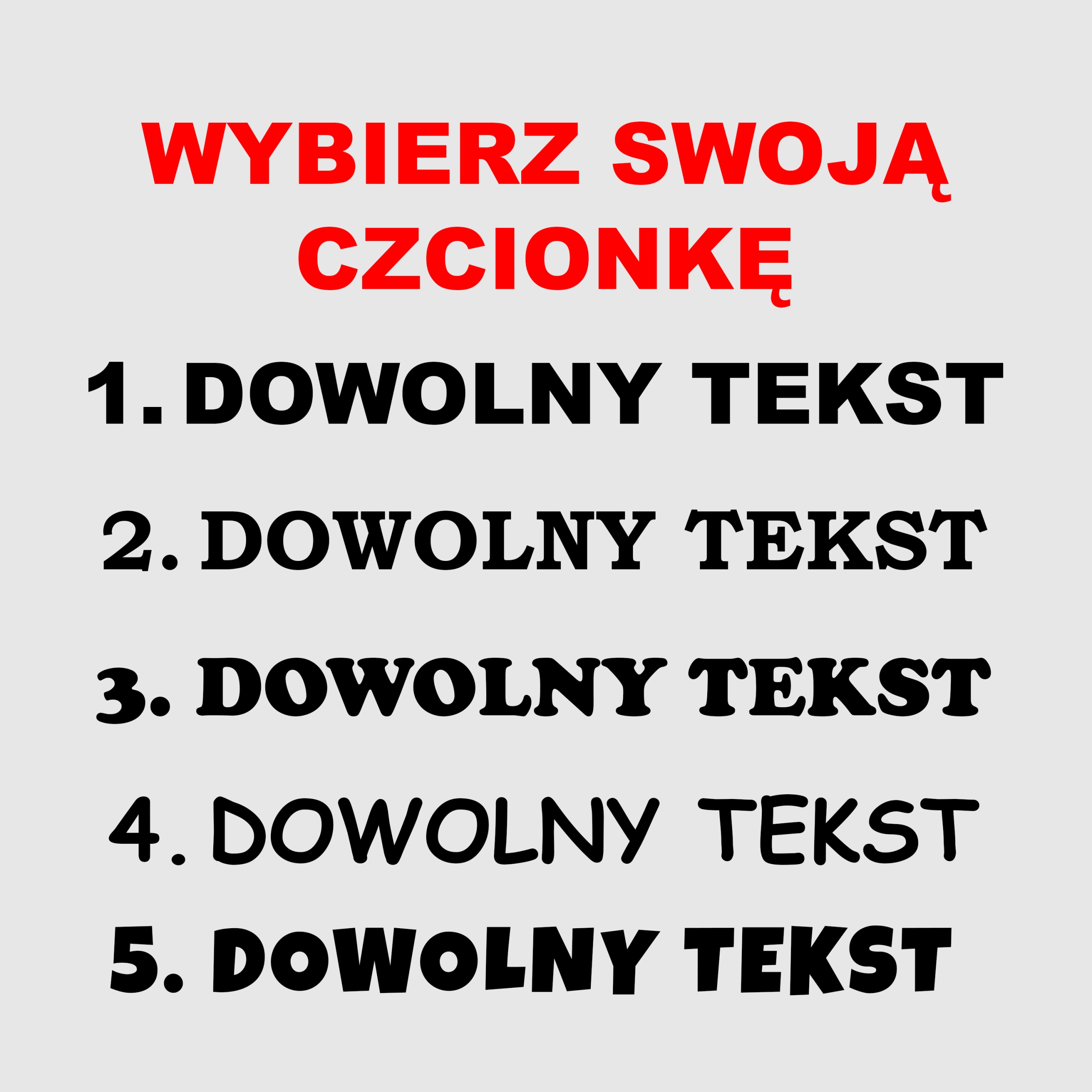3. Kolor napisu: [np. czerwony / srebrny / zielony fluorescencyjny]