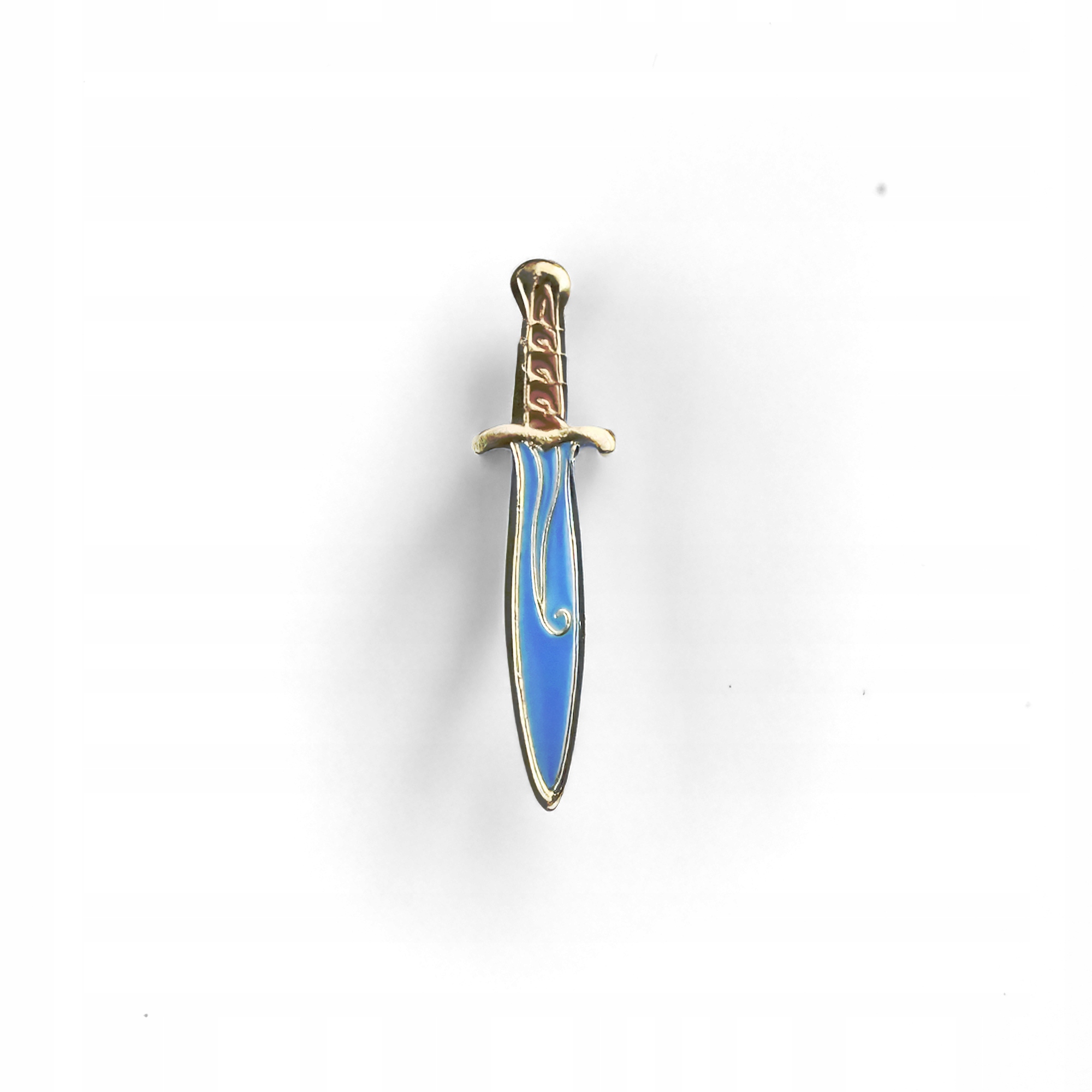 Od Shire po mroczne korytarze Śródziemia, Sting (Żądło) to mały miecz o wielkiej odwadze—teraz możesz nosić go na co dzień. Ta przypinka Sting Sword to świetny akcent dla fanów: budzi nostalgię, domyka cosplay i ładnie prezentuje się na tablicy kolekcjonerskiej. Błyszcząca emalia w odcieniach od jasnego po głęboki niebieski tworzy klingę, a ciepłe złote obramowanie z wyraźnie podniesionymi liniami podkreśla elfi charakter. Na ostrzu biegnie elegancki zawijas, jelce są smukłe, a szpic zwęża się tak, jak w znanym rekwizycie. Rękojeść zdobi brązowa emalia z segmentami w złocie. Z tyłu widać pojedynczy trzpień z czarną gumową zatyczką oraz „waflową” fakturę, która stabilnie trzyma się na kurtce czy plecaku. Metal dodaje trwałości i połysku, a kompaktowe 4 cm sprawiają, że Pin jest subtelny, ale rozpoznawalny. Gotowy do podarowania, noszenia i ekspozycji—mały kawałek Śródziemia do Twojej codziennej wyprawy.
