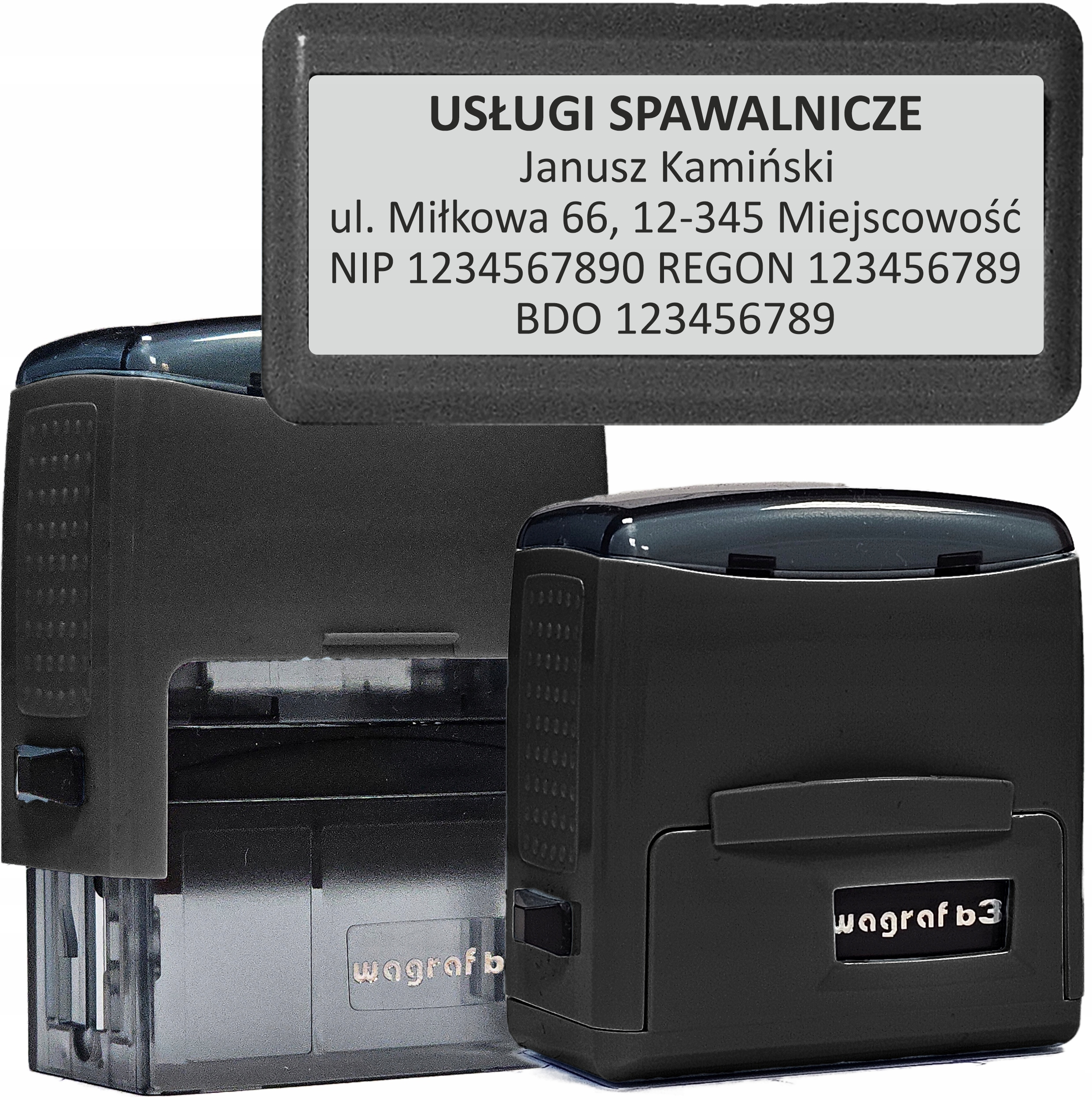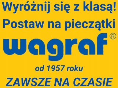 POLSKA firma WAGRAF istnieje od 1957 roku. Od początku działalności zajmuje się wyłącznie produkcją opraw do stempli. Wytwarza wiele rodzajów opraw do różnych technologii. Najwięcej opraw oferuje do stempli polimerowych i gumowych. Nie zapominamy też o najnowszych trendach w technologii - mamy tu na myśli stemple typu PRE-INK, do których również produkuje oprawy.