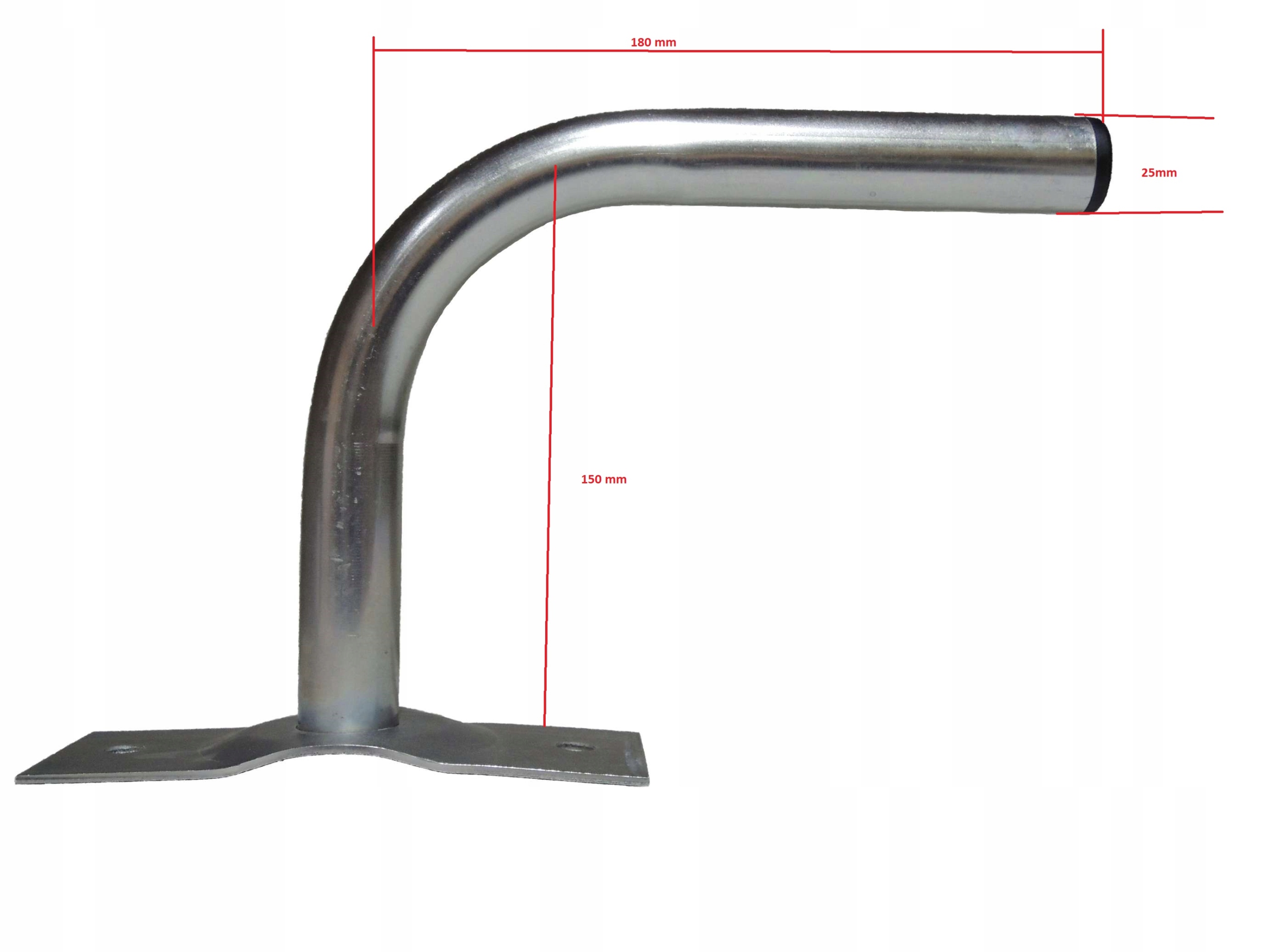 Uchwyt ścienny do mocowania anten telewizyjnych, anten GSM, internetowych oraz anten radiowych na ścianach budynku lub kominach. Średnica rury: 25 mm. Wymiary płytki montażowej: 60 x 150 mm. Otwory montażowe: 2 x 9 mm. Uchwyt do anten wykonany jest ze stali ocynkowanej odpornej na działanie czynników atmosferycznych. Zaślepka z tworzywa sztucznego zapobiega wnikaniu wody do wnętrza uchwytu.