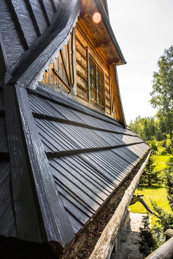 Gont blaszany JANOSIK to wyrób innowacyjny o niepowtarzalnym designie. Jego kształt, tekstura i kompozycja odwzorowują wiernie gont drewniany.