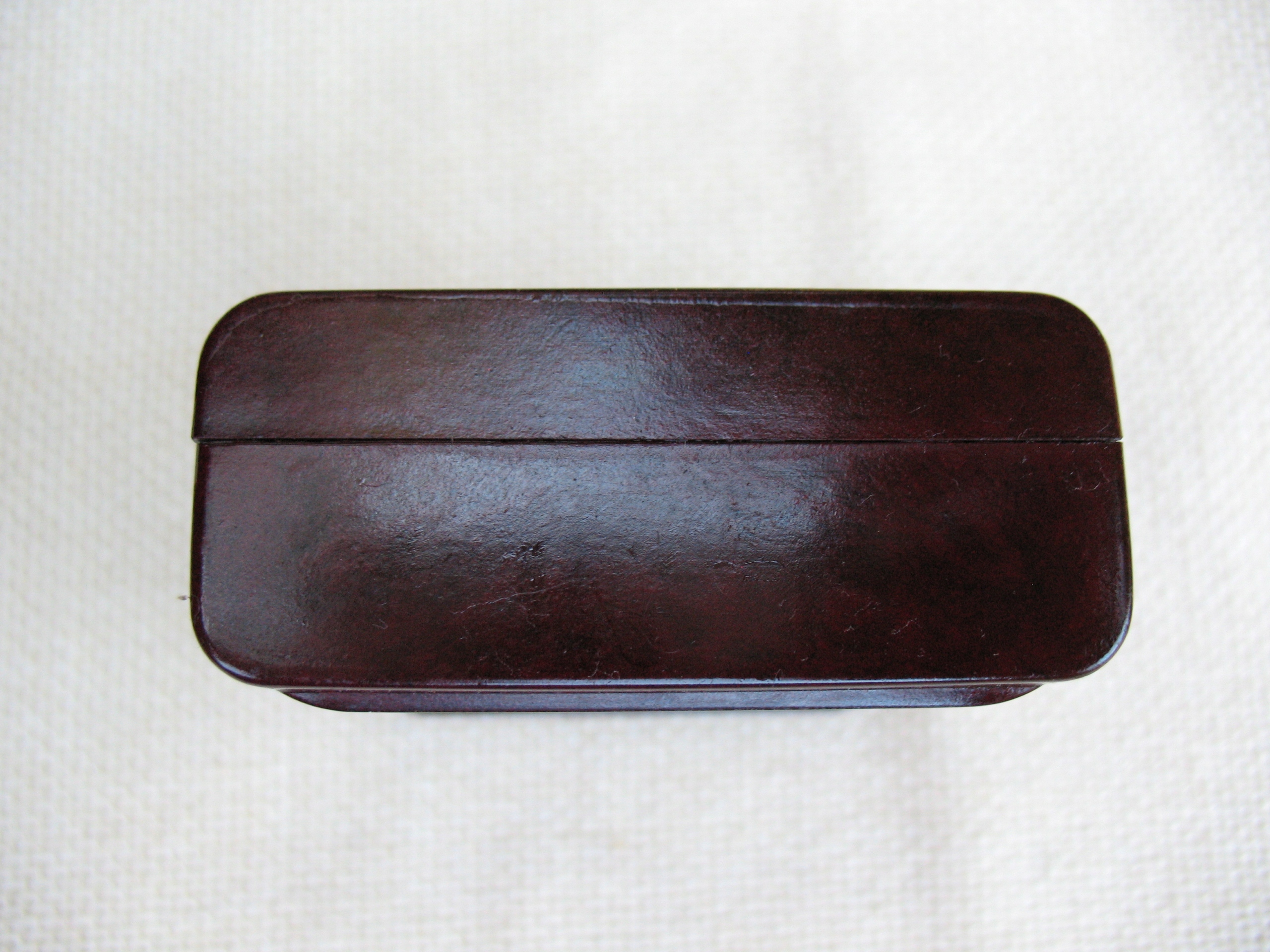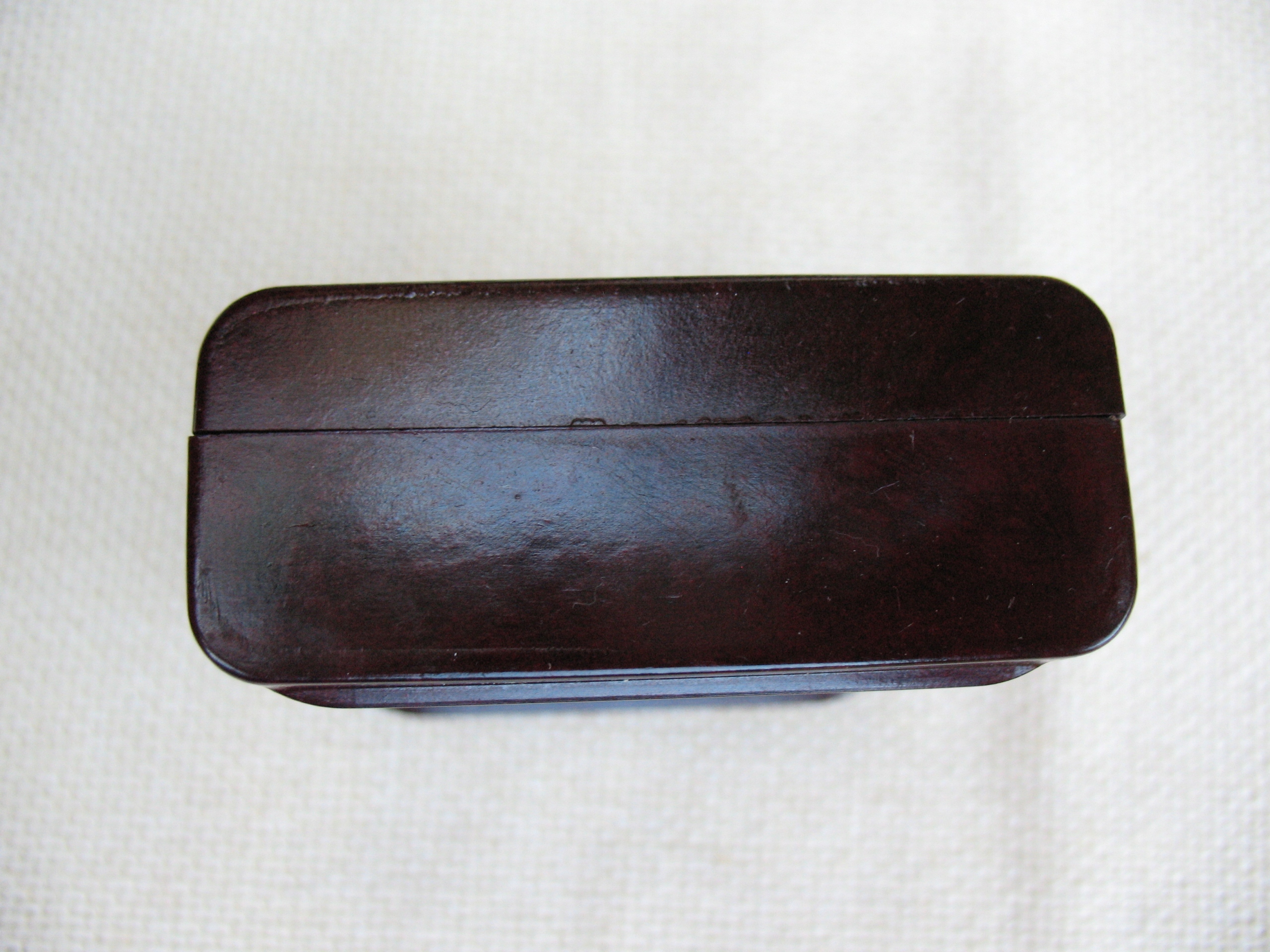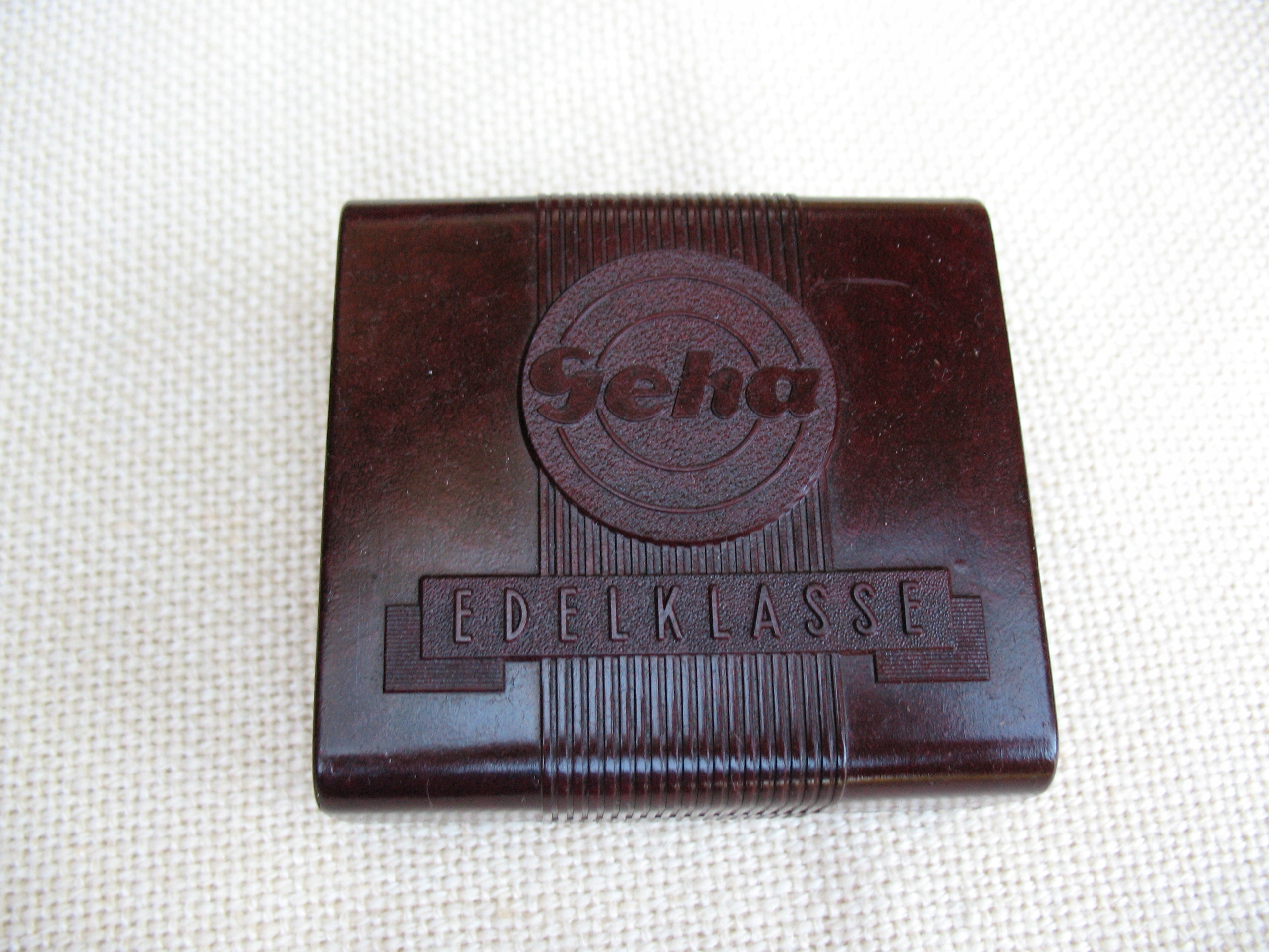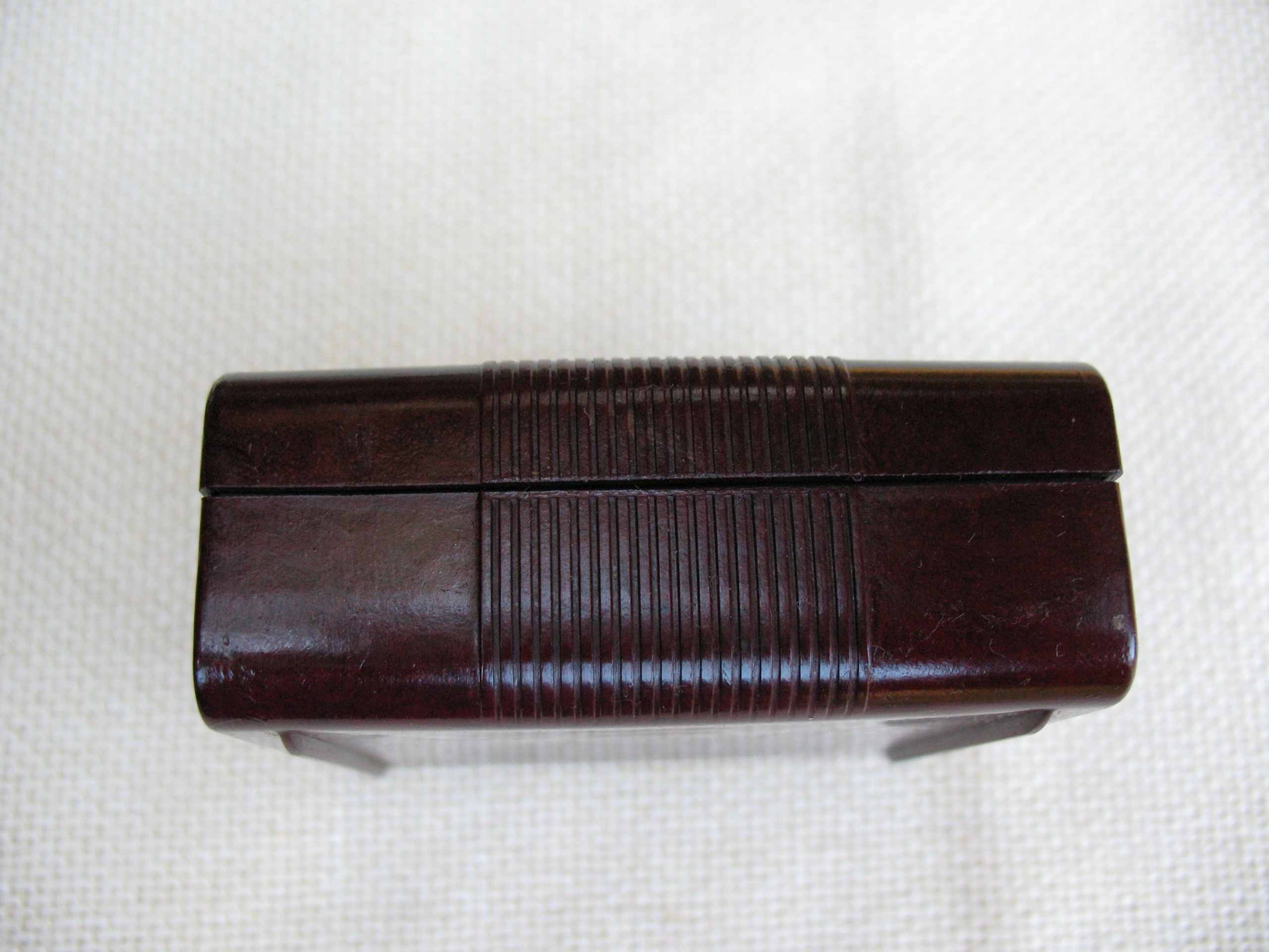 Stare, oryginalne, przedwojenne, puste pudełeczko na taśmę do maszyn piszących Geha. Oryginał. Przedmiot wykonany z bakelitu. Datowanie: lata międzywojenne. Wymiary: 67 x 72 x 29 mm. Stan zachowania: według mnie +db, niewielkie zabrudzenia, przytarcia, zarysowania, wszystko widoczne na skanach. Zapraszam do zakupów.