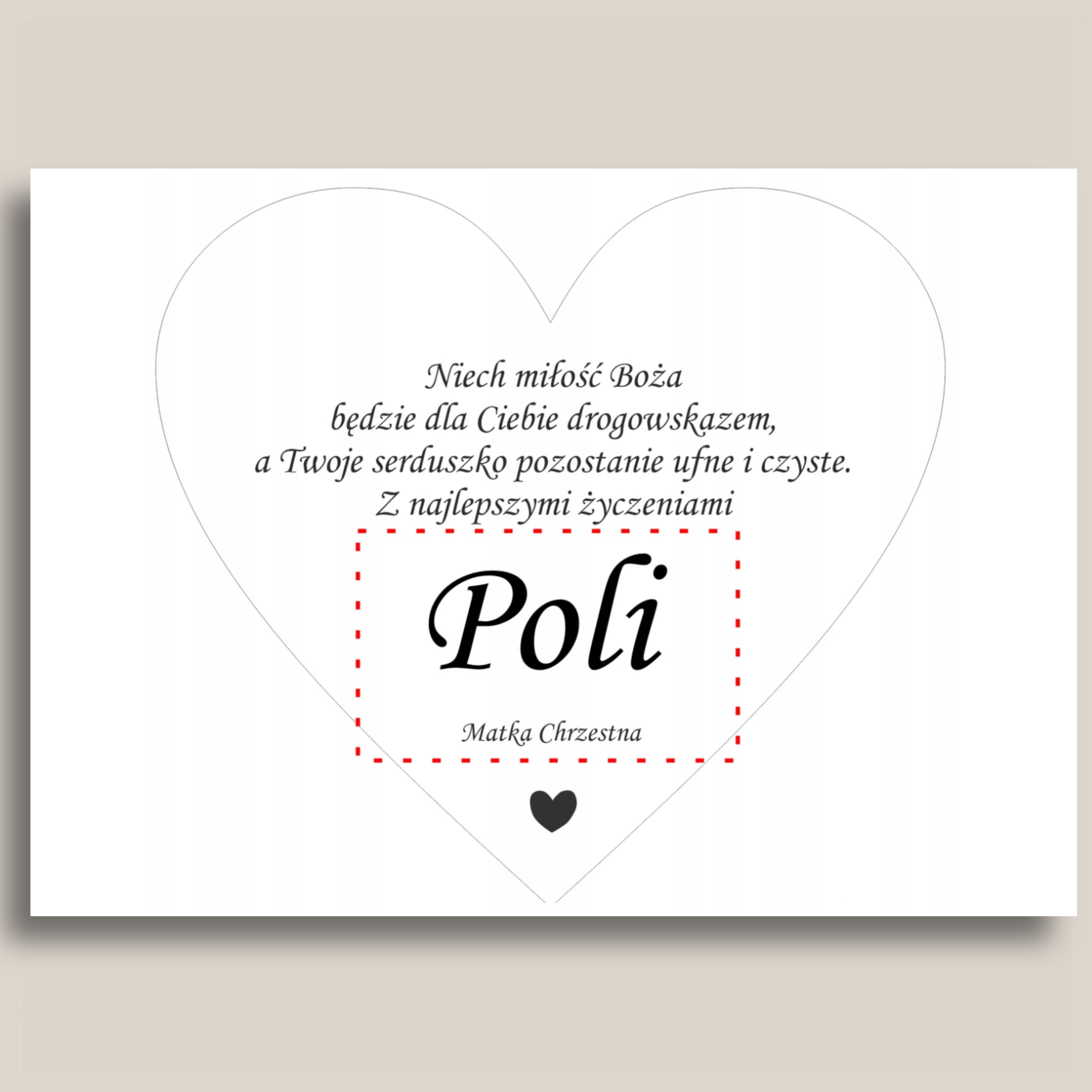 ✅ Można wpisać, od kogo jest prezent – np. Matka Chrzestna, Ojciec Chrzestny, Rodzice lub własna dedykacja (np. Wujek Paweł z rodziną).