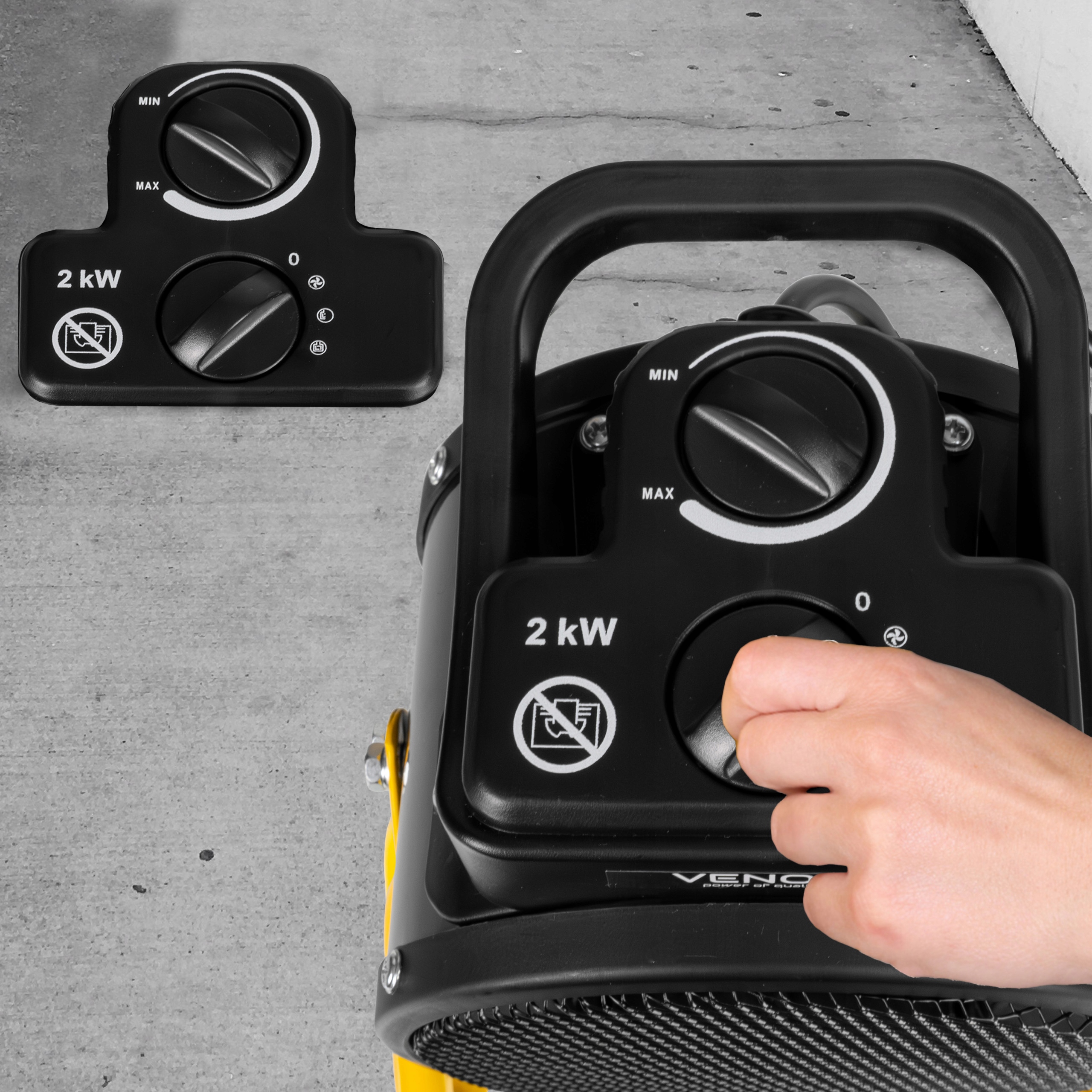 Dodatkowo nagrzewnica VENOM VN 206 została wyposażona w intuicyjny panel sterowania z dwoma pokrętłami wykonanymi z wysokiej jakości tworzywa: