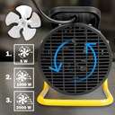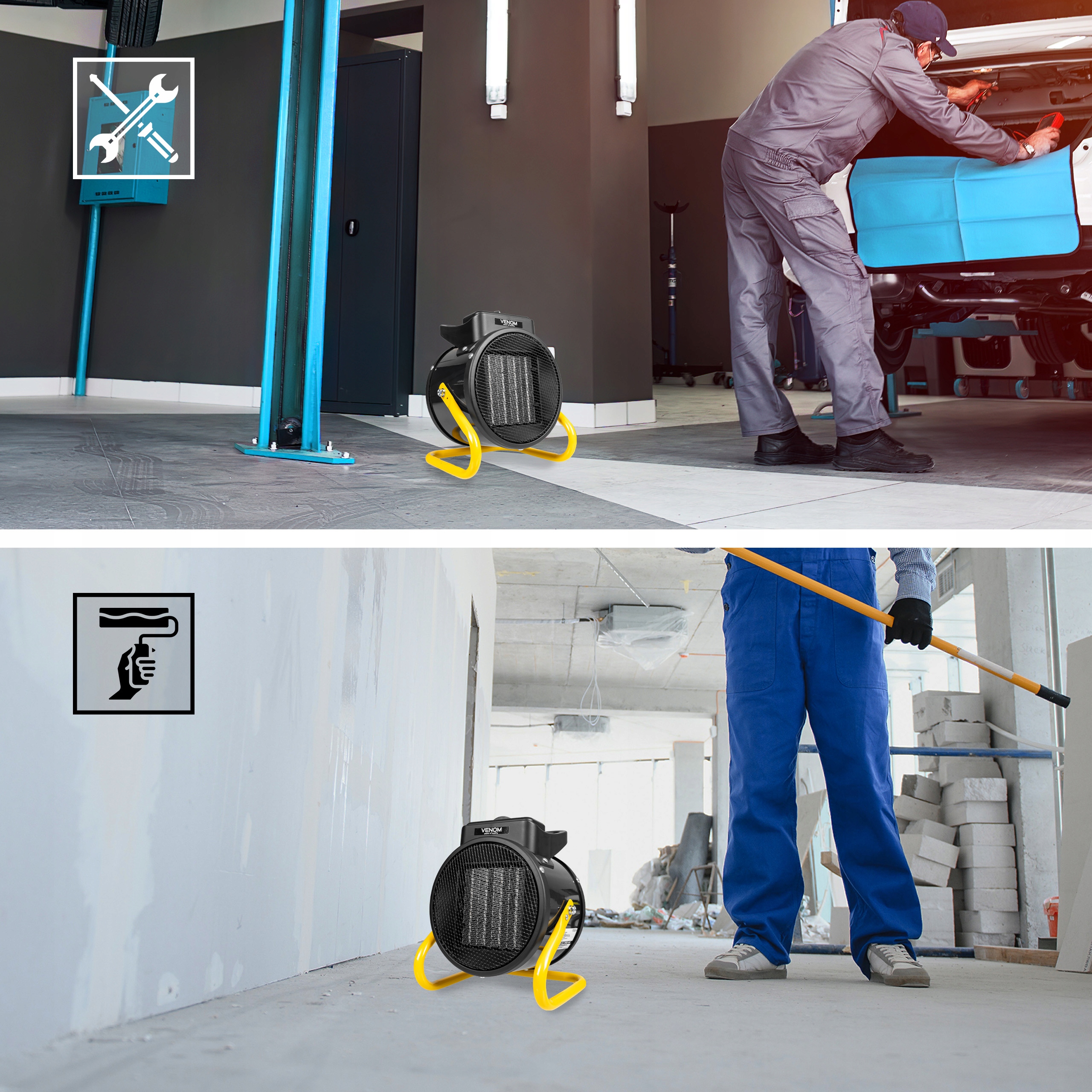 Moc 3000 W pozwala w kilka chwil podnieść temperaturę w pomieszczeniu. Idealna do garaży, warsztatów, magazynów czy domów, gdy potrzebujesz natychmiastowego komfortu cieplnego.