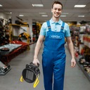 Klasa wodoszczelności IP20 i zabezpieczenia termiczne gwarantują bezpieczne użytkowanie nawet w wilgotnych warunkach, np. w warsztatach czy garażach.