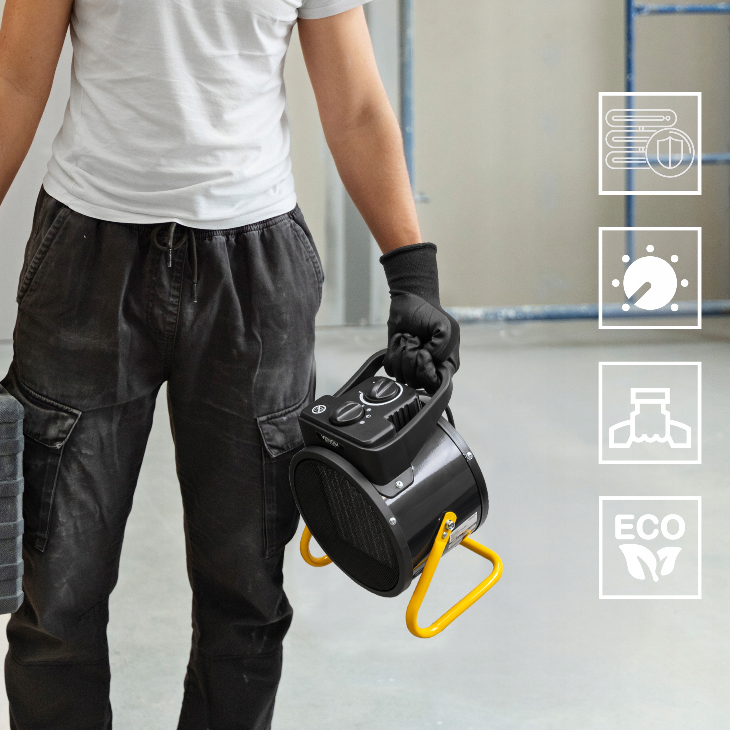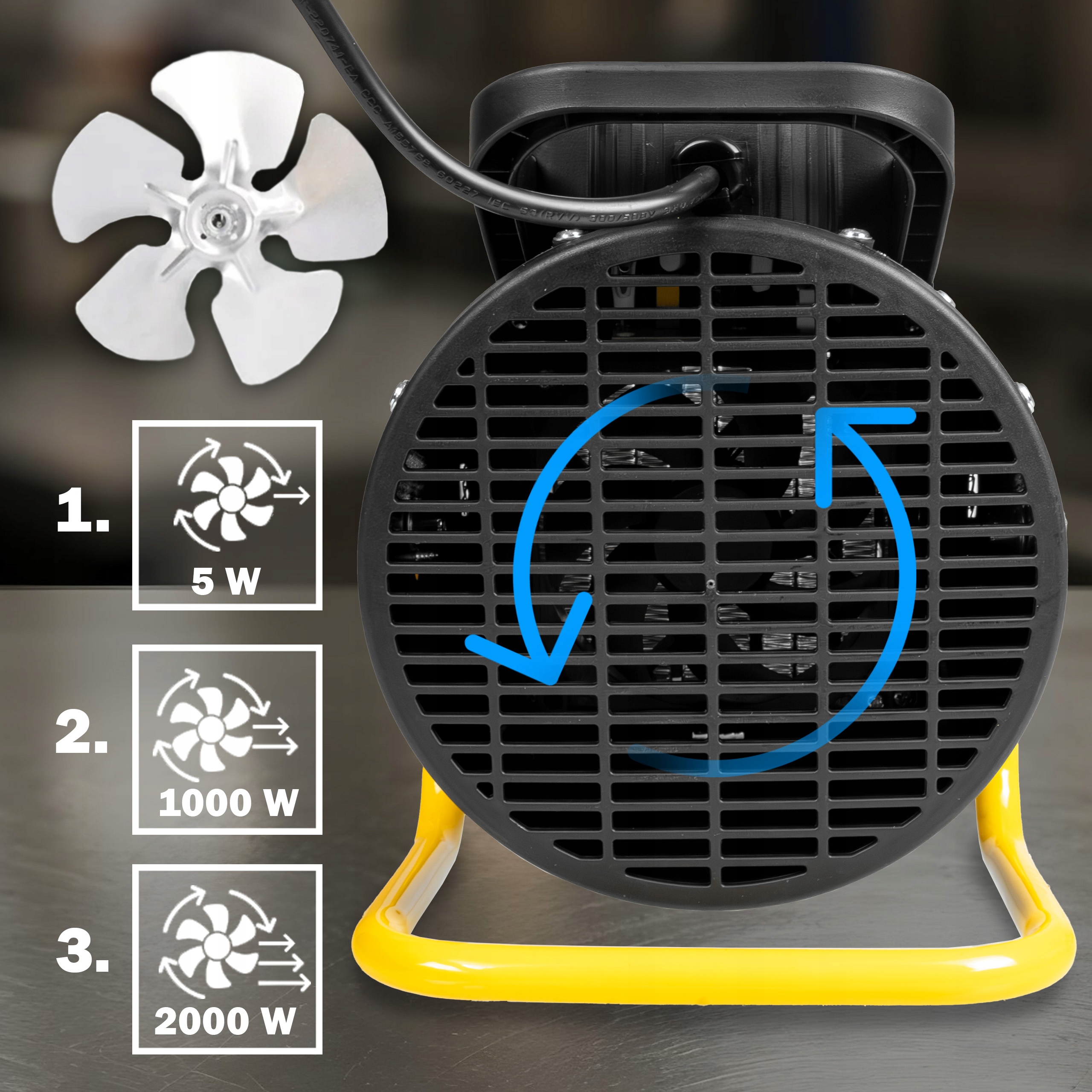 Moc 3000 W pozwala w kilka chwil podnieść temperaturę w pomieszczeniu. Idealna do garaży, warsztatów, magazynów czy domów, gdy potrzebujesz natychmiastowego komfortu cieplnego.