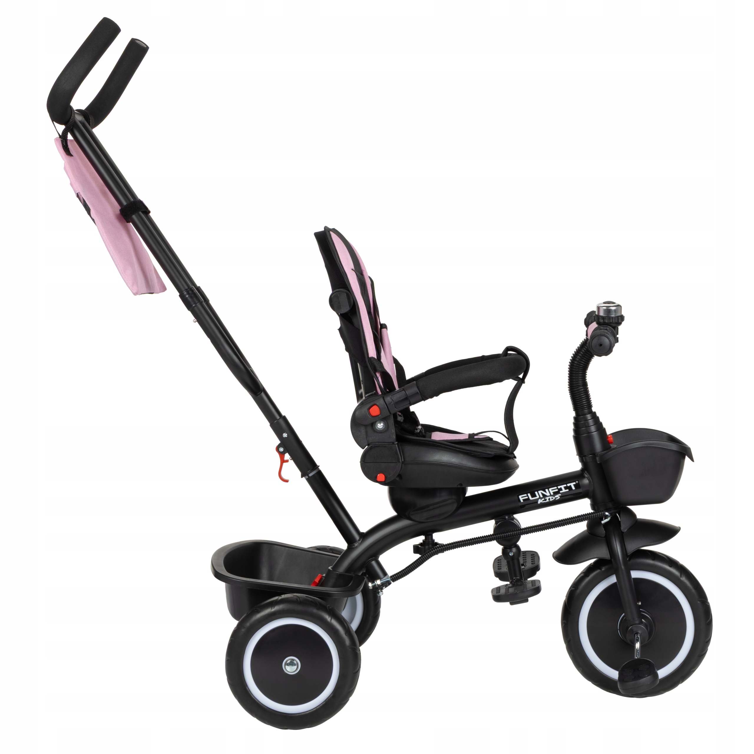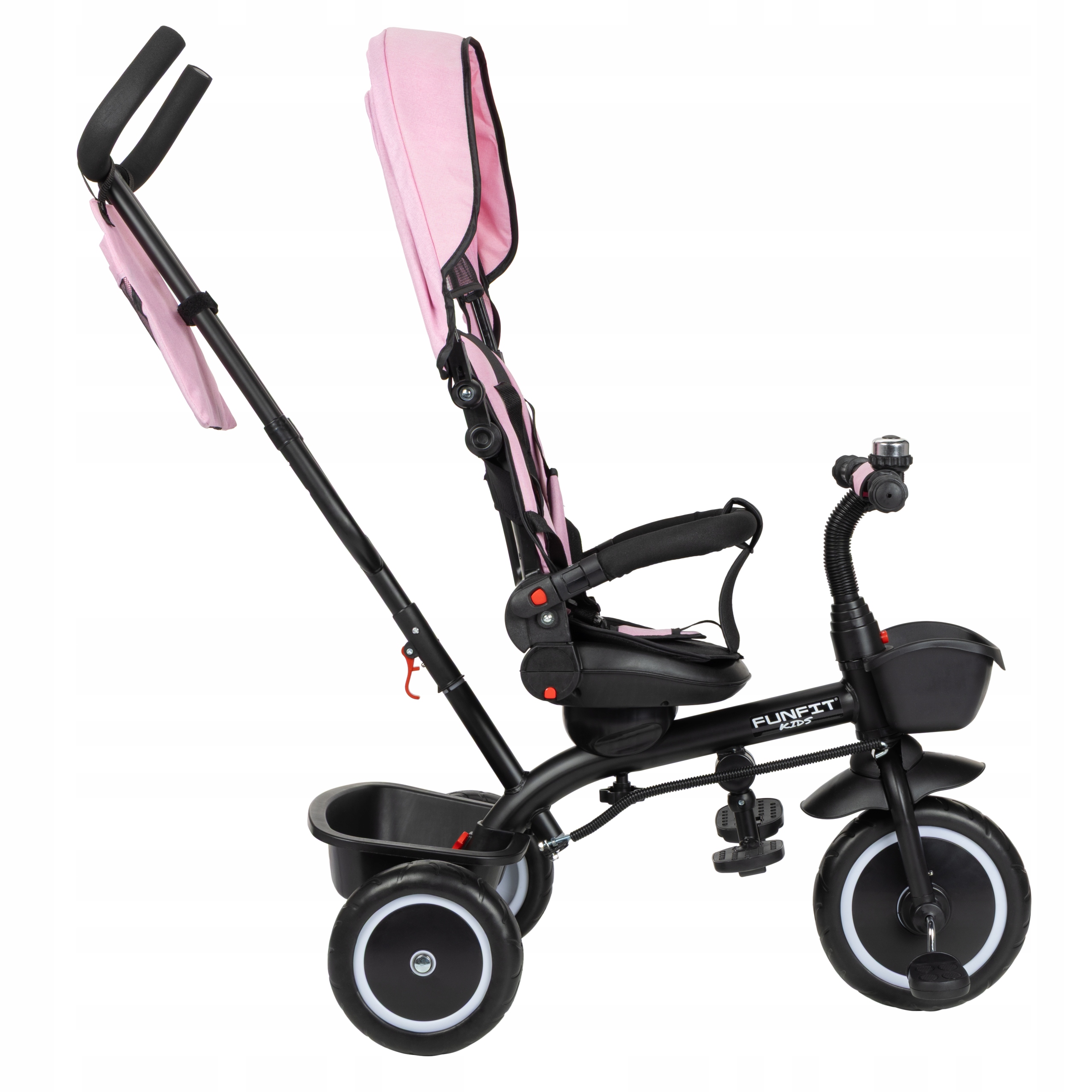 Trójkołowy rowerek FUNFIT KIDS to idealne połączenie wózka spacerowego i rowerka biegowego w jednym. Wyposażony w regulowaną rączkę do prowadzenia, pozwala rodzicom na pełną kontrolę nad jazdą dziecka. Komfort zapewnia miękkie, obracane siedzisko z pasami bezpieczeństwa oraz duża budka przeciwsłoneczna chroniąca przed słońcem. Solidna konstrukcja gwarantuje stabilność i wygodę podczas jazdy po różnych nawierzchniach. Dodatkowo praktyczne koszyki na akcesoria umożliwiają zabranie ulubionych zabawek czy drobiazgów na spacer.