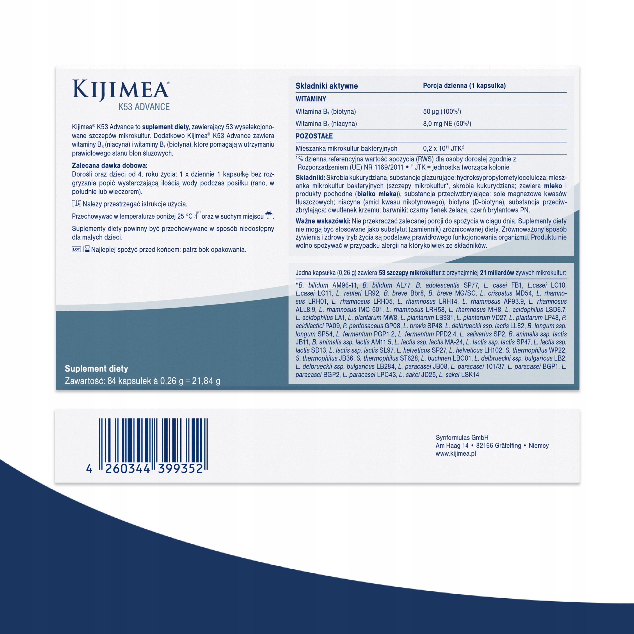 Kijimea K53 Advance - unikalna, wysoko skoncentrowana kompozycja 53 starannie wyselekcjonowanych szczepów mikrokultur.