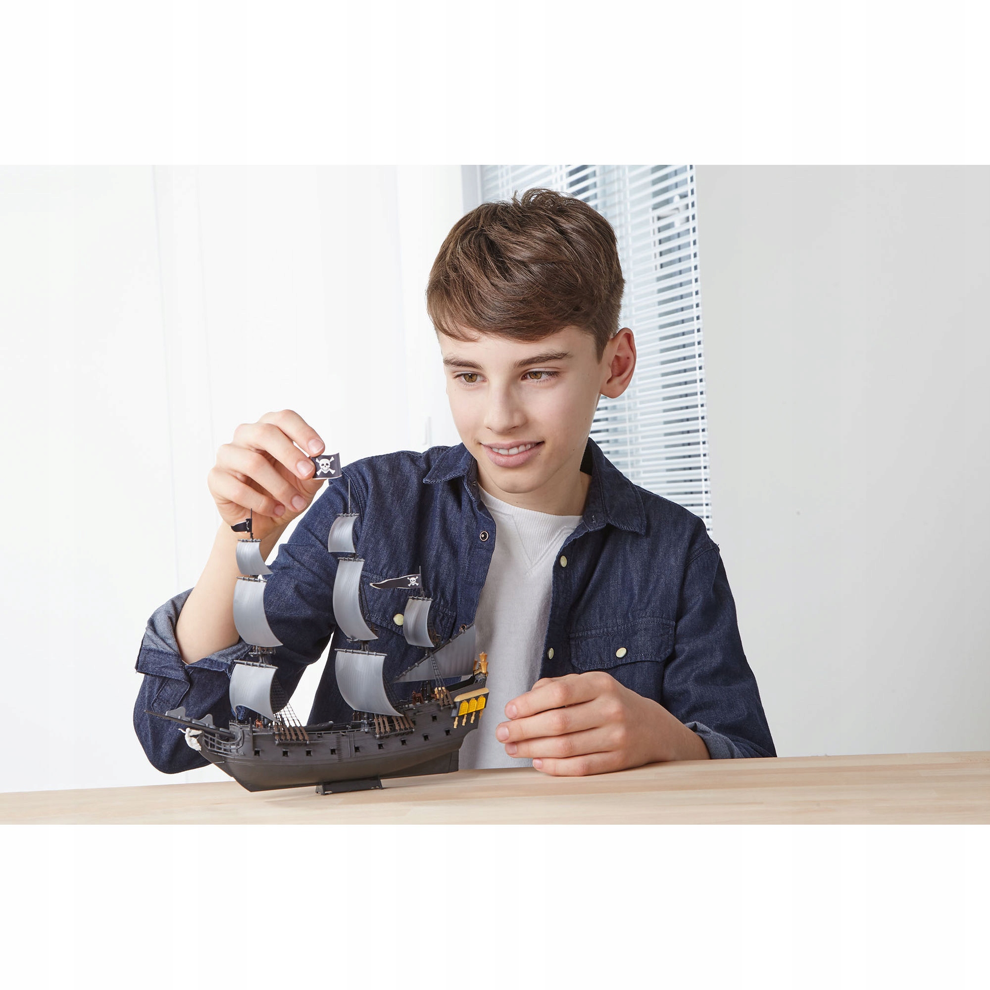 Model konstrukcyjny legendarnego statku „Czarna Perła” dowodzonego przez Kapitana Jacka Sparrowa z serii filmów „Klątwa Karaibów”. W piątej części „ZEMSTA SALAZARA” Jack staje twarzą w twarz z przerażającym Kapitanem Salazarem, który chce zabić każdego pirata na otwartym morzu. - Pokłady o strukturze drewnianej - Strukturalne żagle - Kotwica - Łódź wiosłowa - Broń - Osłona - Figura - Ozdobiona rufa - Mapa flagi - Stojak ekspozycyjny. Zabawa, która daje wspaniałe rezultaty dla wszystkich w wieku powyżej 10 lat. Szybkie efekty budowy gwarantuje innowacyjny system Easy-Click: wielokolorowe, precyzyjnie wykonane elementy pasują do siebie, tworząc solidne połączenie i są ozdobione naklejkami. Nie ma potrzeby malowania! Natomiast można dodatkowo pomalować ten model, co uczyni go całkowicie wyjątkowym. Zalecana lista max 5 farb, znajduje się w instrukcji obsługi.