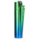 Zapalniczka Clipper z efektowną, metalową obudową imitującą pióra pawia.
