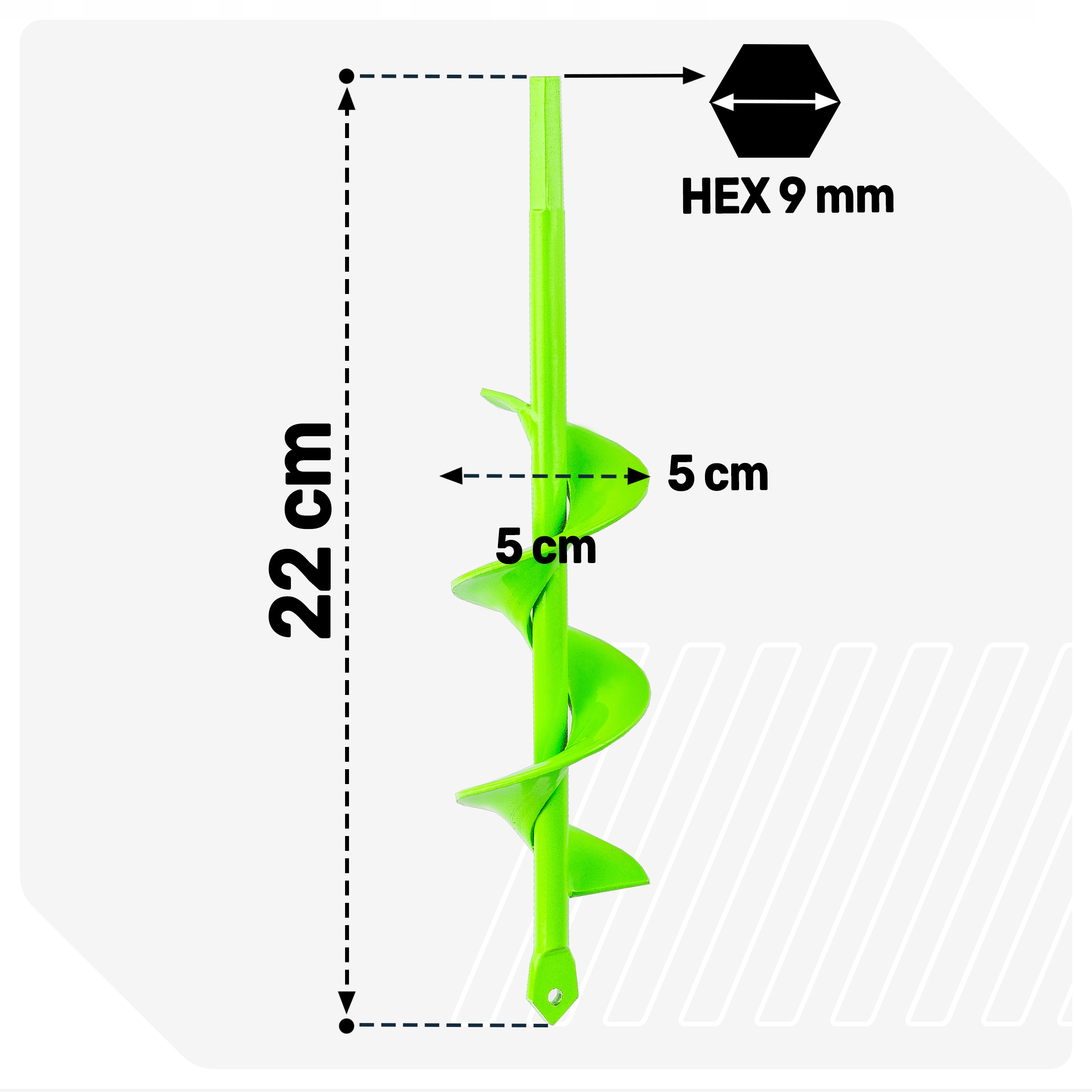 Wiertło do wiertarki o wymiarach 5×22 cm znacząco przyspiesza prace ogrodowe, pozwalając wykonać dziesiątki otworów w zaledwie kilka minut.
