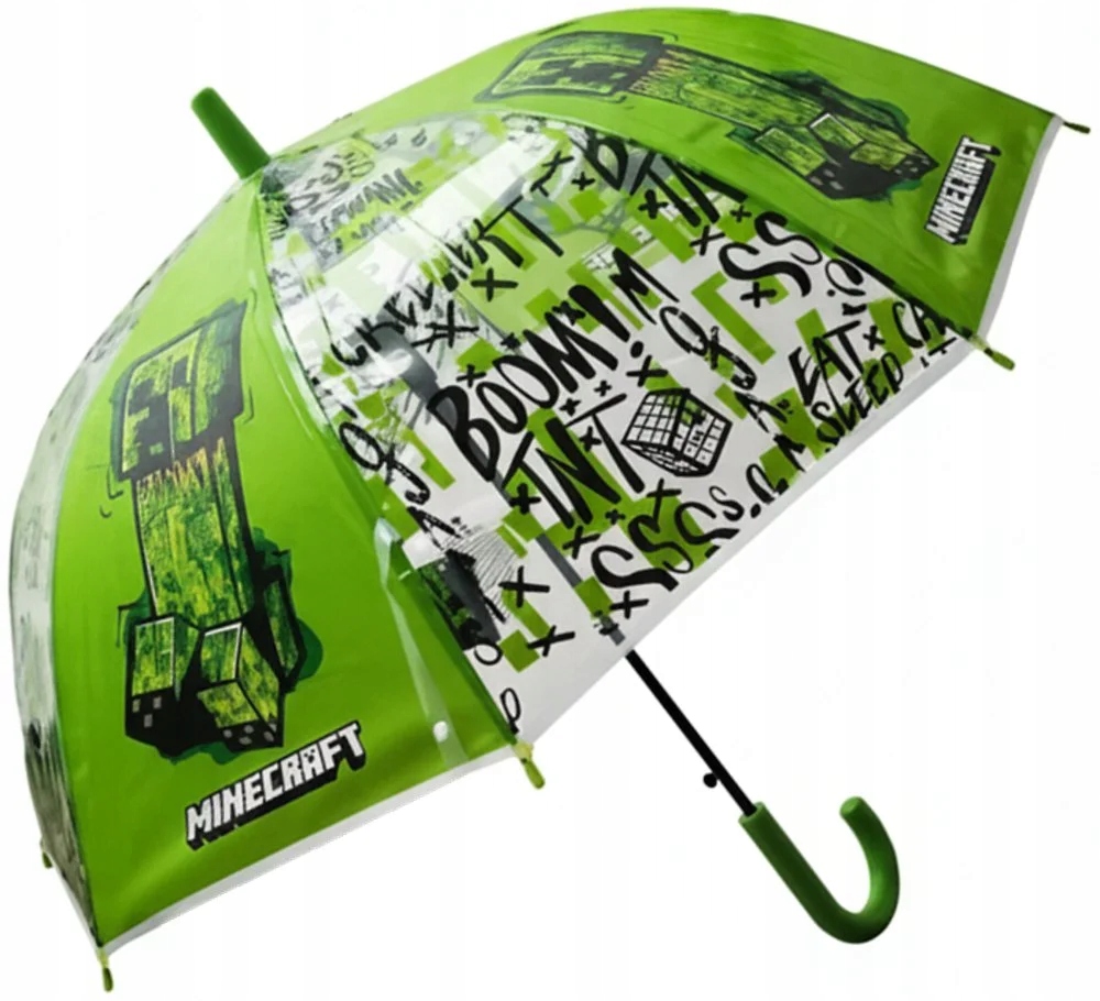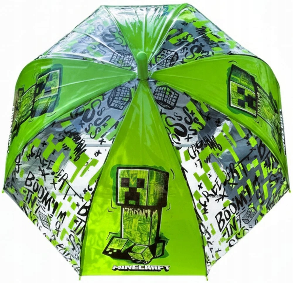 Stylowy parasol dziecięcy Minecraft z motywem Creepera zachwyci wszystkich małych fanów tej popularnej gry. Połączenie zielono-czarnego nadruku z przezroczystą powierzchnią nie tylko urzeka, ale jednocześnie pozwala dzieciom lepiej orientować się w przestrzeni podczas chodzenia. Parasolka otwiera się automatycznie po naciśnięciu przycisku, dzięki czemu korzystanie z niej jest szybkie i wygodne nawet dla mniejszych dzieci. W stanie rozwartym ma średnicę 72 cm, a po zamknięciu mierzy 67 cm. Dzięki lekkiej konstrukcji i wyprofilowanemu uchwytowi jest przyjemny w trzymaniu i stanie się ulubionym dodatkiem na deszczowe dni.