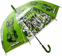 Parasol dziecięcy Minecraft z automatycznym otwieraniem i popularnym motywem Creepera. Dzięki przezroczystej powierzchni dzieci łatwo orientują się w przestrzeni podczas chodzenia. W stanie rozwartym ma średnicę 72 cm, po zamknięciu mierzy 67 cm.