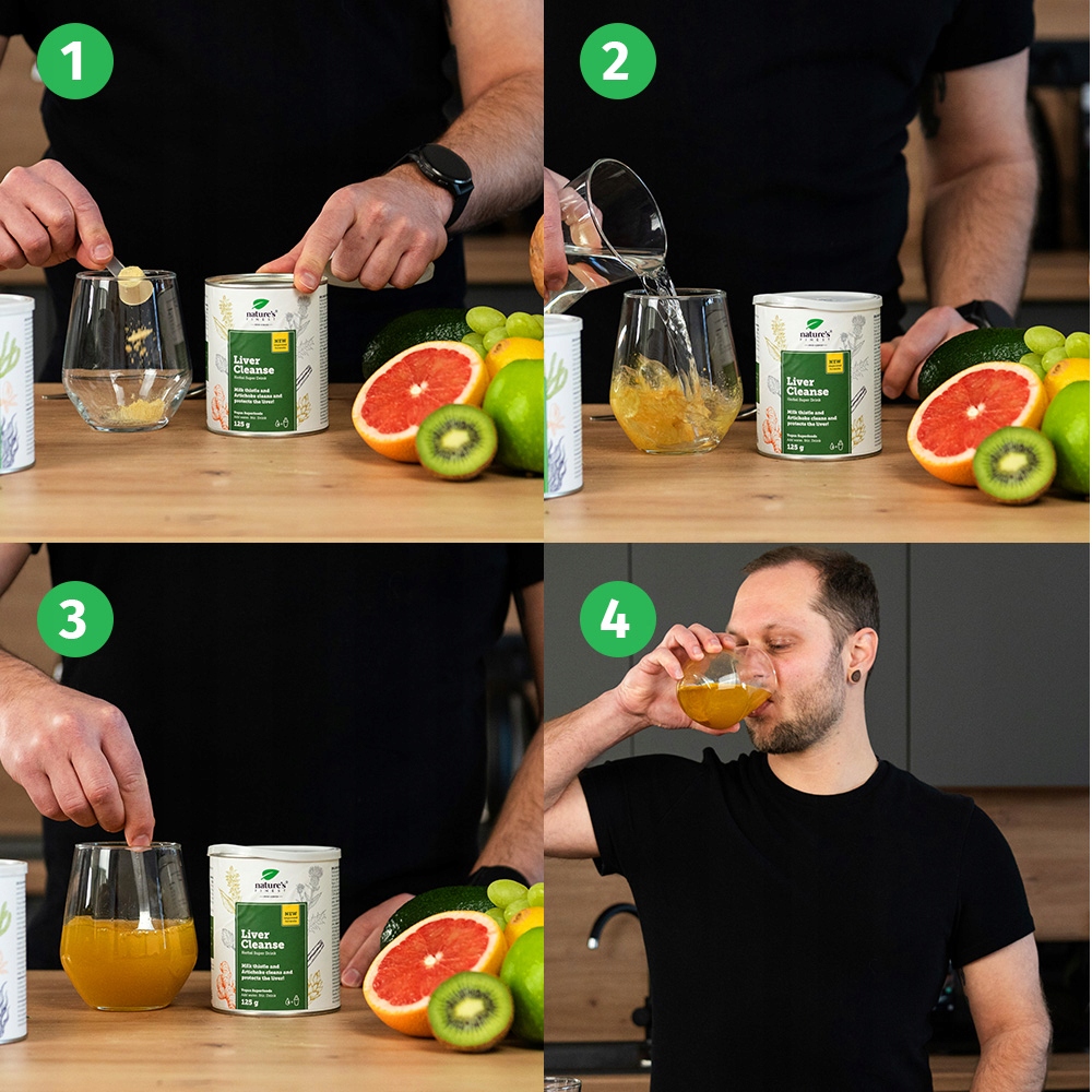 Ta pyszna mieszanka ostropestu plamistego, karczocha, kurkumy, chlorelli i opuncji figowej o smaku cytrynowym pomaga organizmowi eliminować toksyny, wspomaga trawienie i sprzyja wewnętrznemu samopoczuciu.