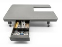 Co więcej, stolik został wyposażony w wbudowaną szufladkę na akcesoria, dzięki której wszystko, czego potrzebujesz – stopki, igły, szpulki, rozpruwacz – masz zawsze pod ręką. To idealne rozwiązanie, które łączy w sobie porządek i wygodę. Nie musisz sięgać do oddzielnych pudełek – wszystko masz w jednym miejscu, zintegrowanym ze stolikiem.