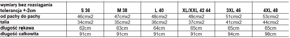 Rozmiary: S 36 | M 38 | L 40 | XL/XXL 42 44 | 3XL 46 | 4XL 48