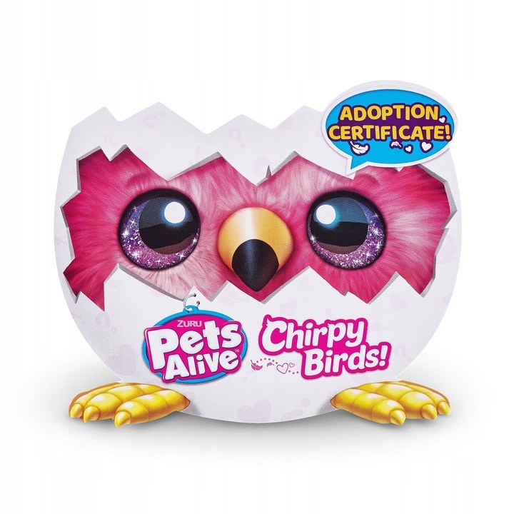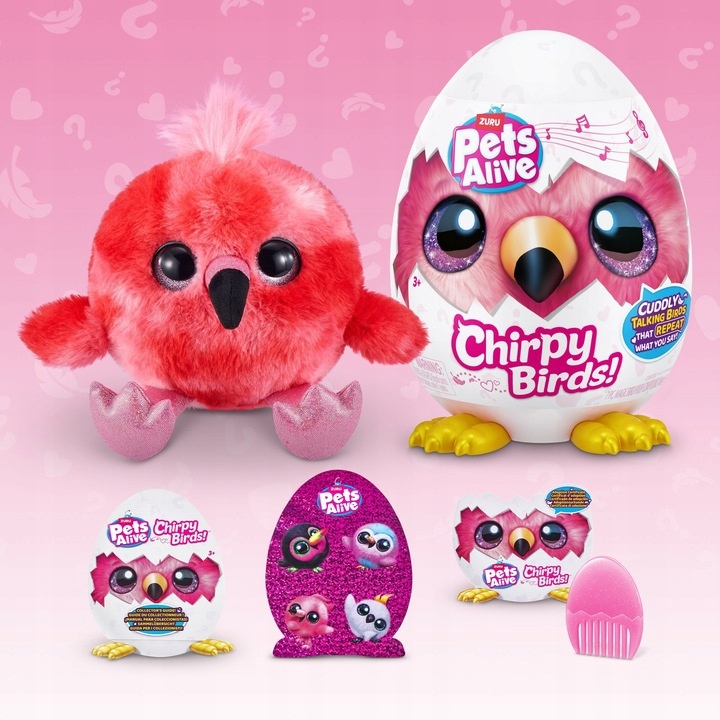 Przedstawiamy najsympatyczniejsze ptaki w okolicy! Chirpy Birds to niezwykle mięciutkie maskotki, które uwielbiają rozmowy i zabawę. Powiedz im coś, a one natychmiast powtórzą Twoje słowa – zawsze w zabawnym stylu! Potrafią też zaśpiewać swoje ulubione, wesołe piosenki, by umilić każdą chwilę. Wystarczy rozbić jajko i odkryć w nim swojego nowego, radosnego towarzysza.