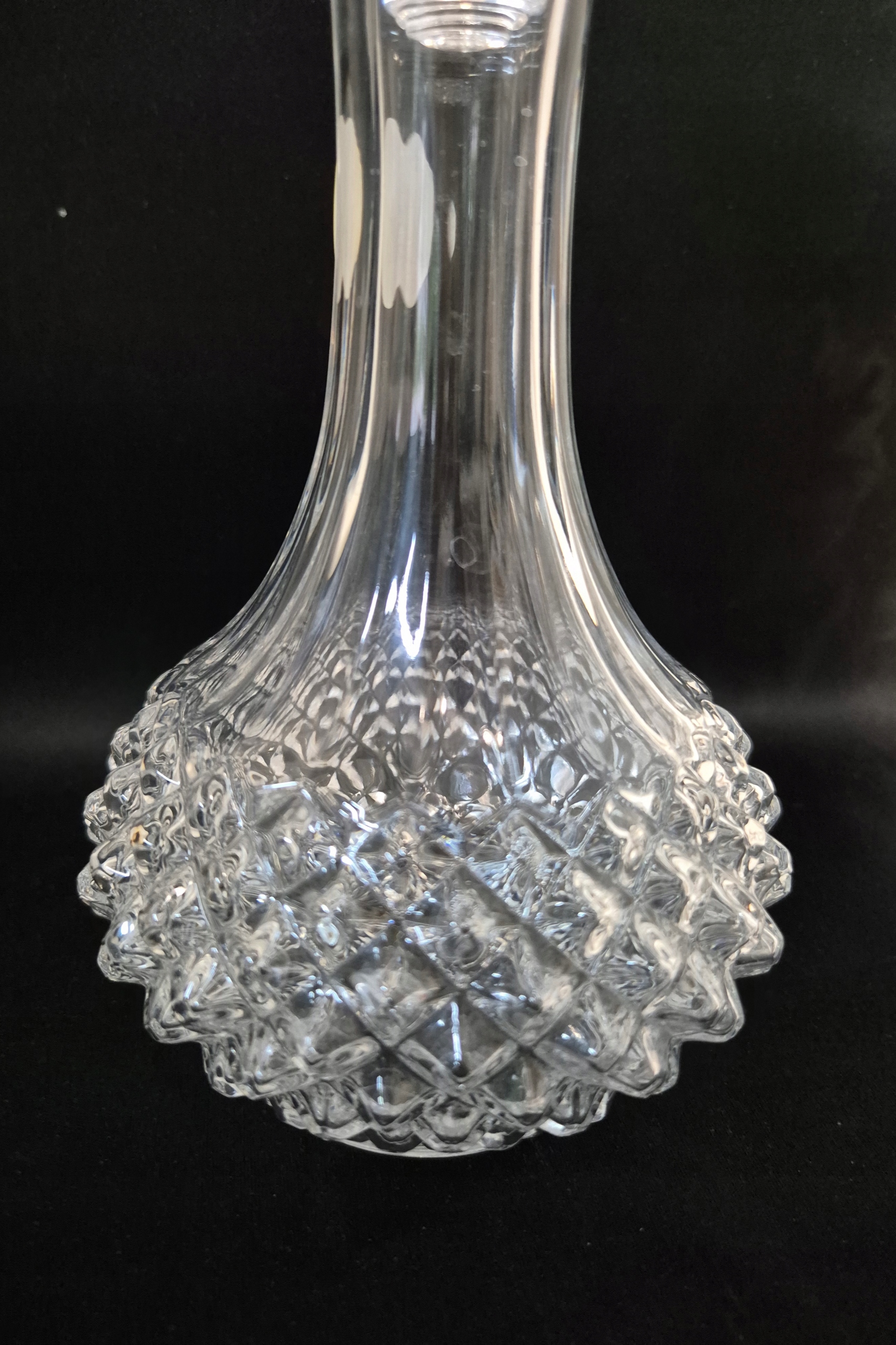 Karafka z grubego szkła kryształowego, z dekoracyjnym szlifem w dolnej części i dopasowanym korkiem. Idealna do serwowania alkoholi lub jako ozdoba stołu. Klasyczny, ponadczasowy design.