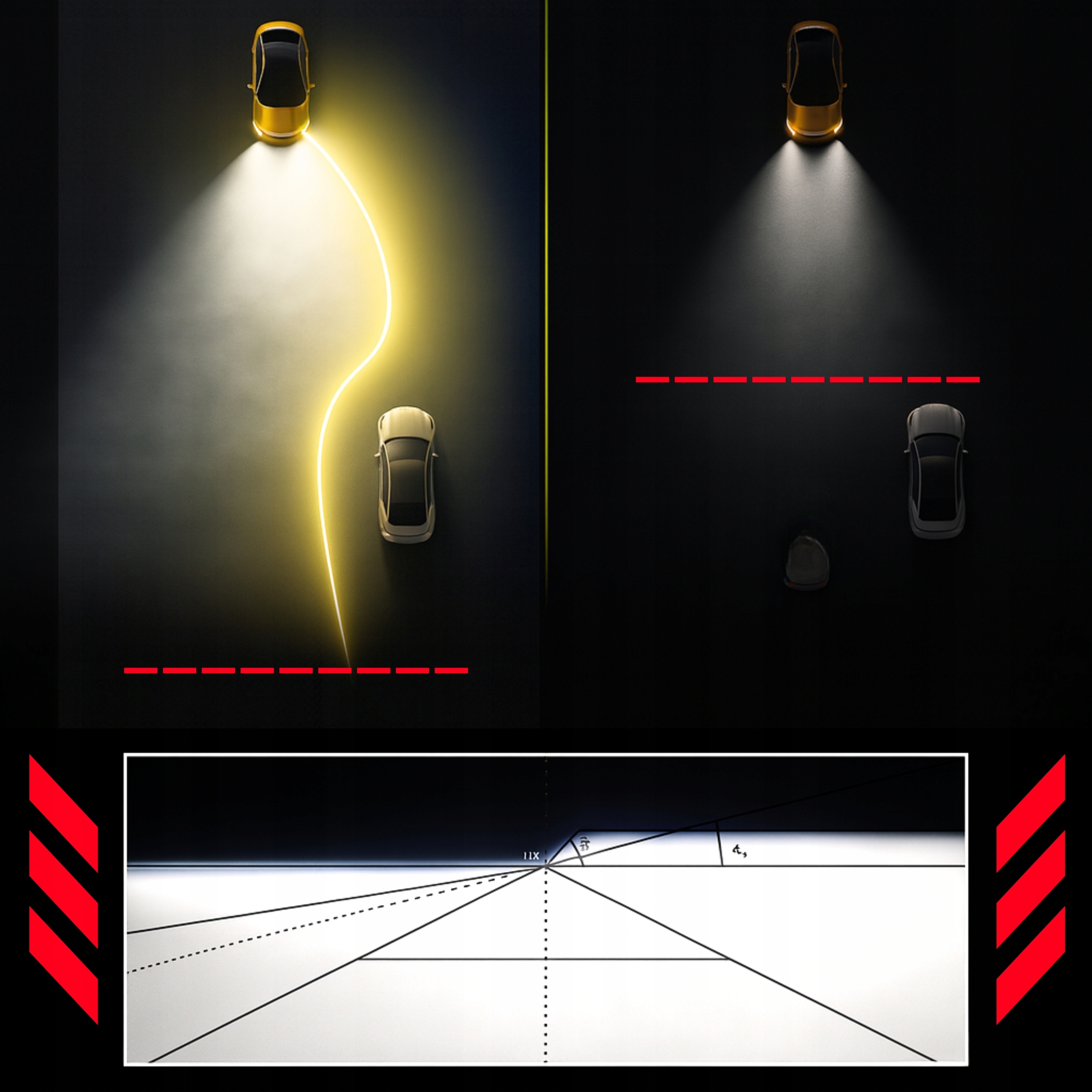 ➡️ Większe skupienie światła = Maksymalna widoczność