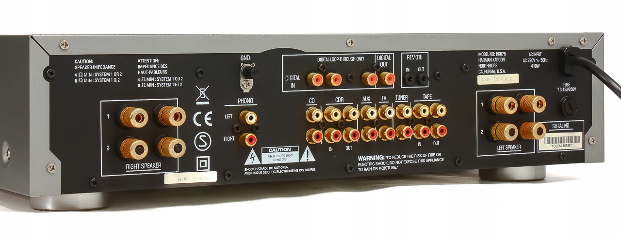 7 wejść (Phono, Tuner, CD, CDR, AUX, Tape , TV) wszystkie wyjścia złocone.