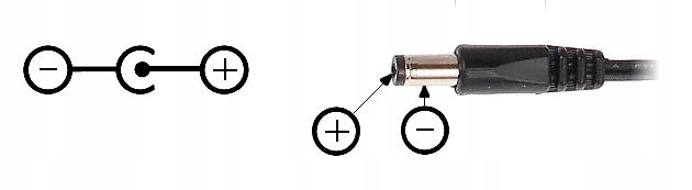 Złącze: Wtyk 2.1/5.5 mm na przewodzie + adapter 6.5/4.3/1.4 mm