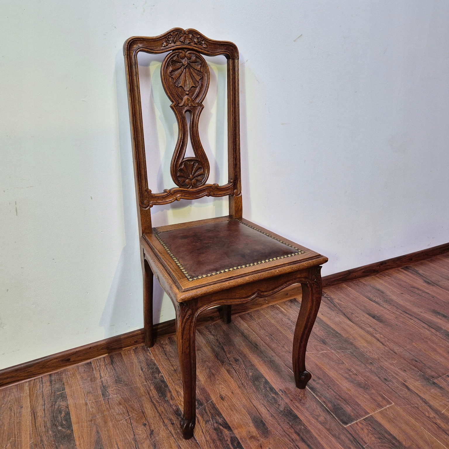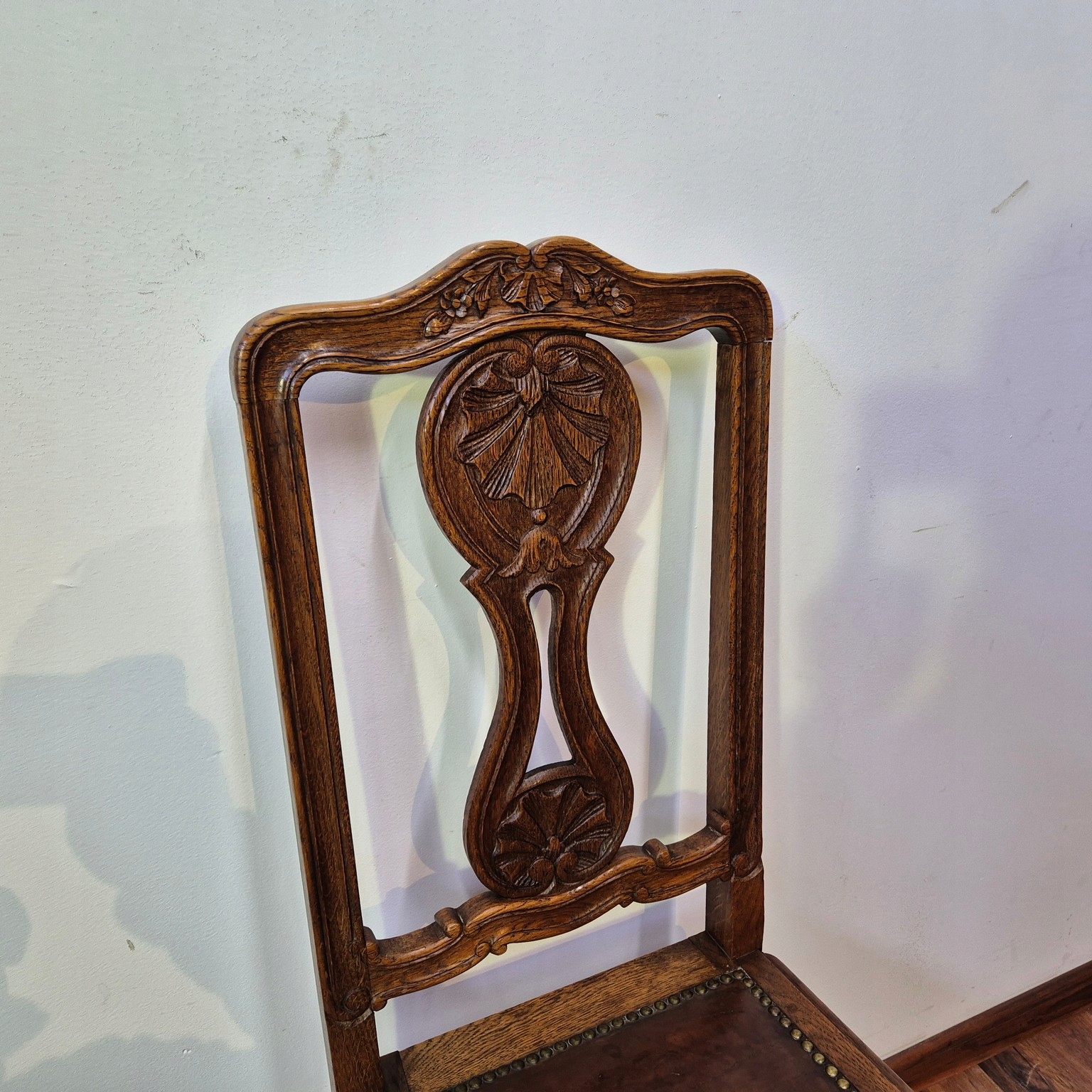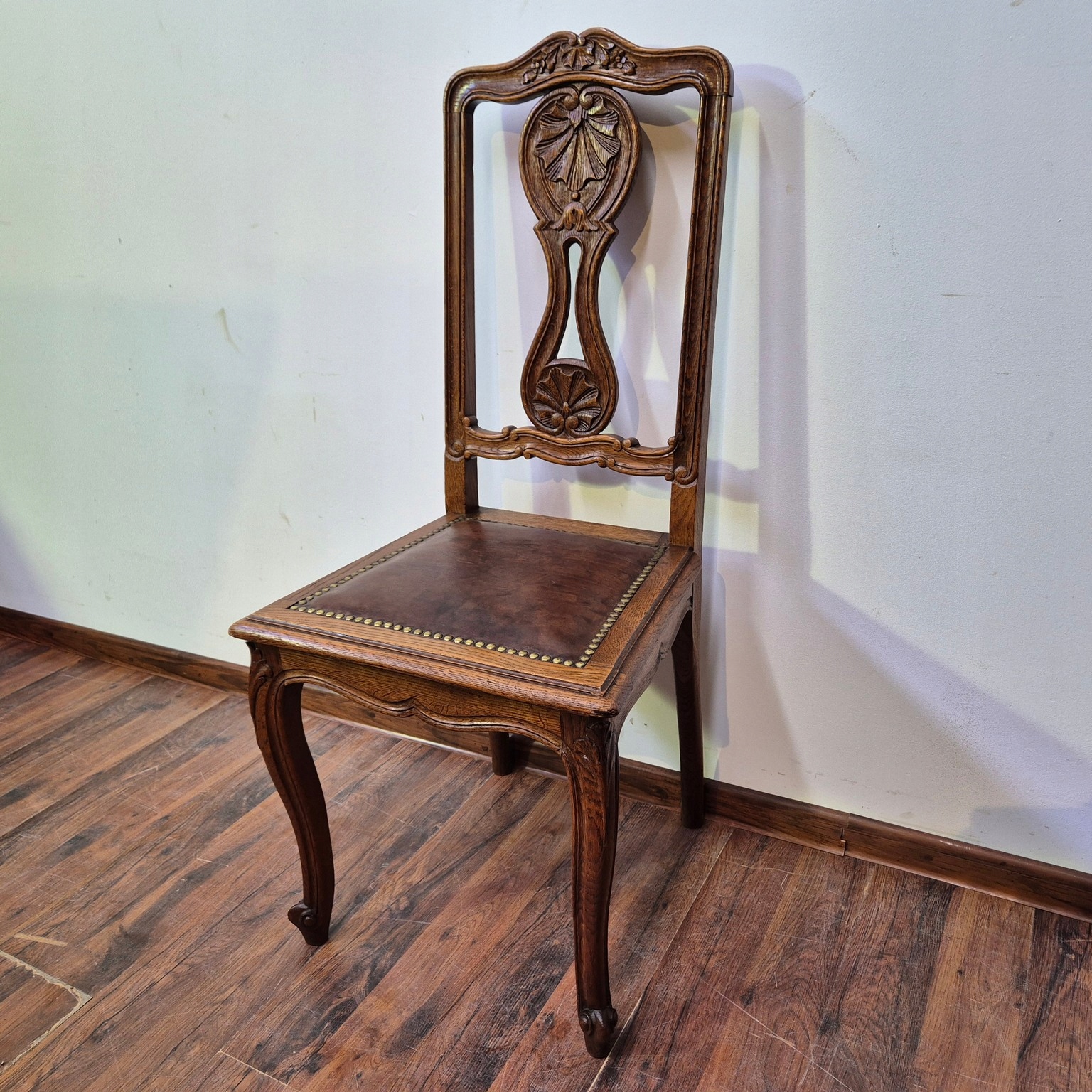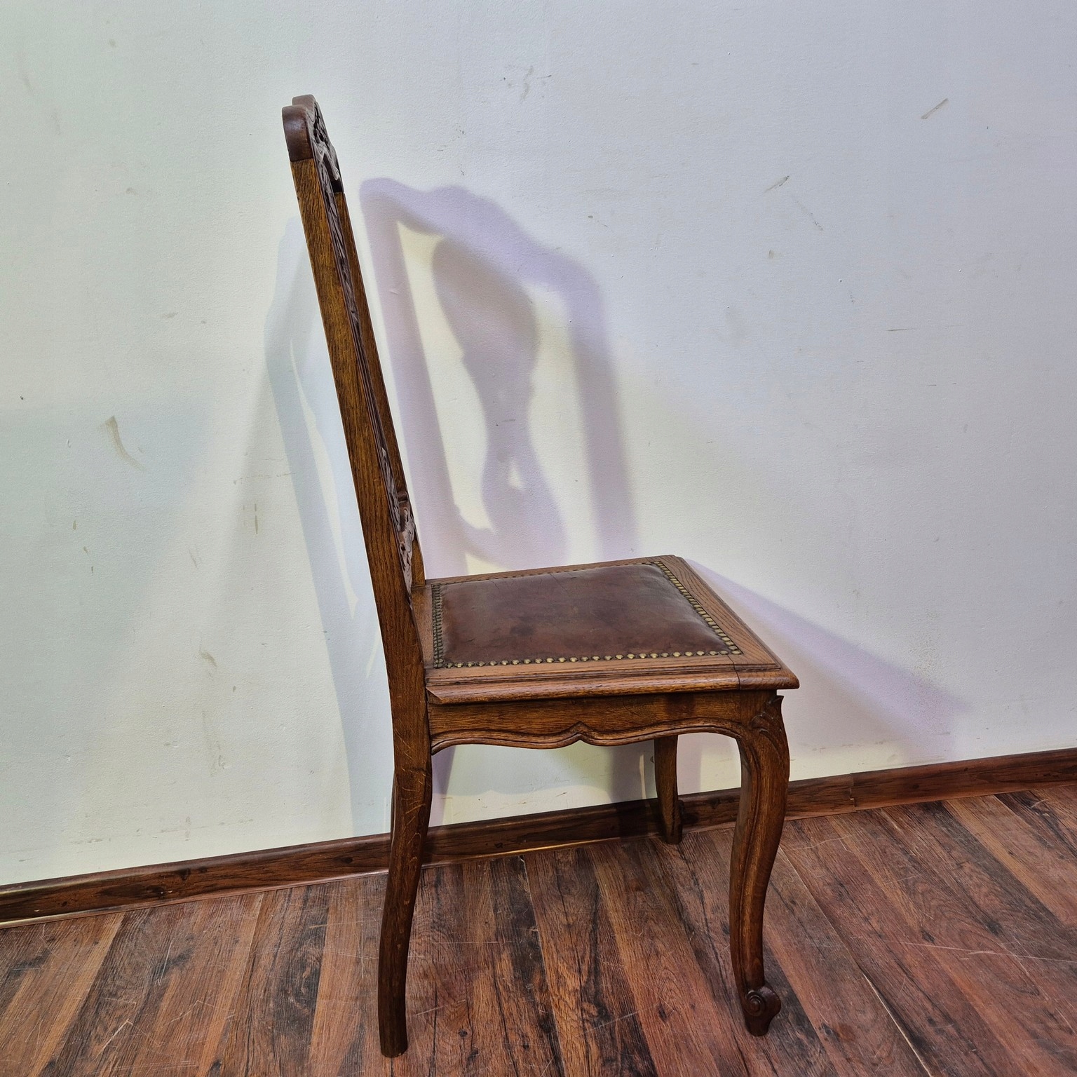Piękne Krzesła Ludwikowskie .Kraj Pochodzenia Francja .Wykonane z drewna dębowego. Krzesła stabilne. Materiał obiciowy skóra naturalna .