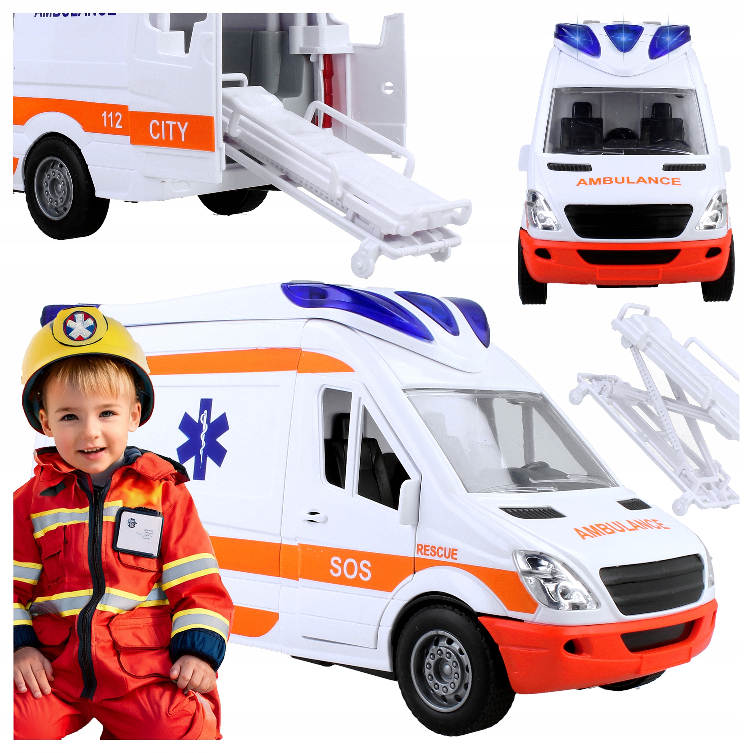 ✅ EFEKTY ŚWIETLNE I DŹWIĘKOWE – karetka wyposażona jest w syreny, klakson oraz migające światła, co dodatkowo podkręca realizm zabawy