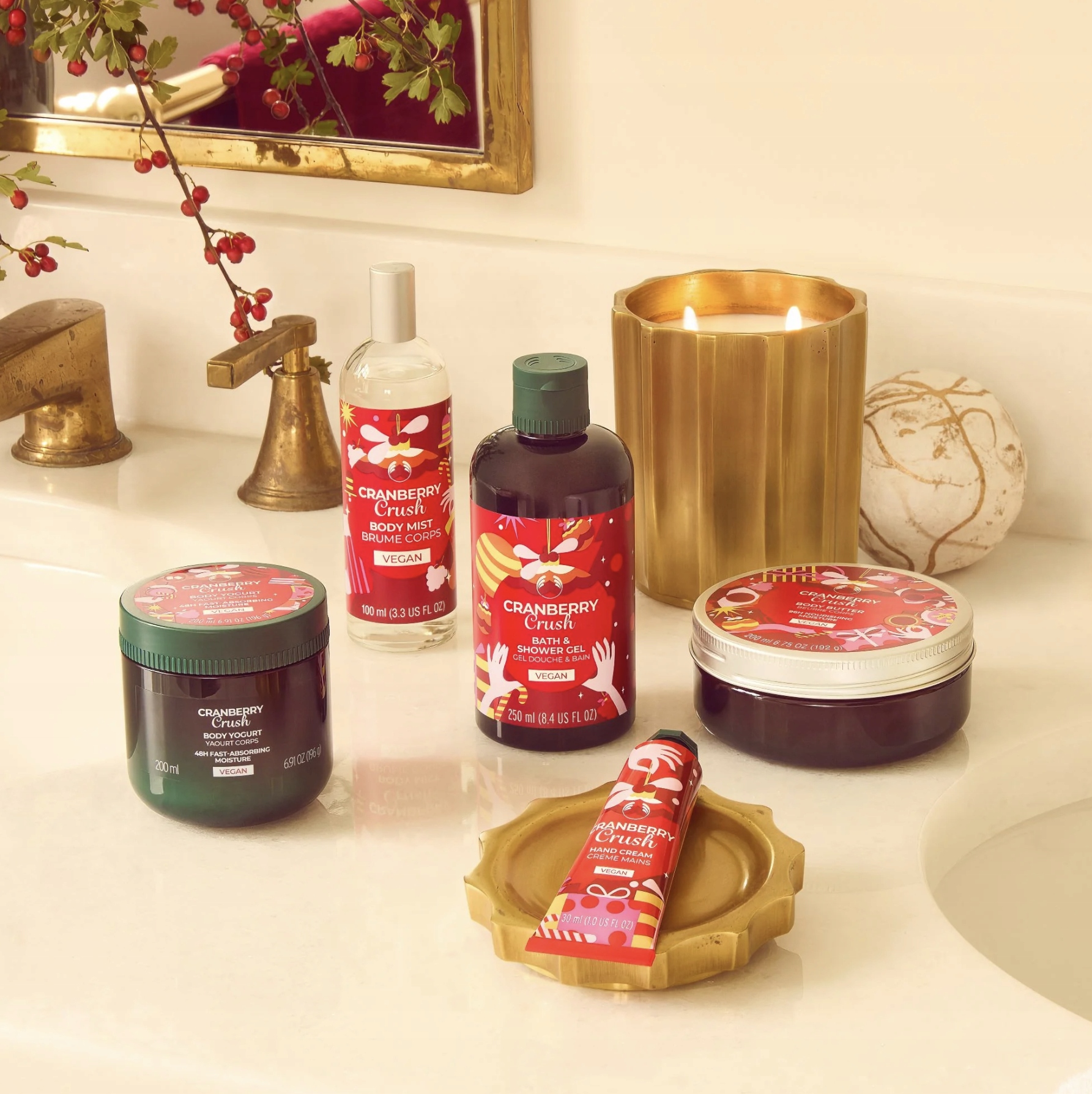 Przedmiotem sprzedaży jest żurawinowy krem do rąk w wersji świątecznej CRANBERRY CRUSH HAND CREAM marki THE BODY SHOP.