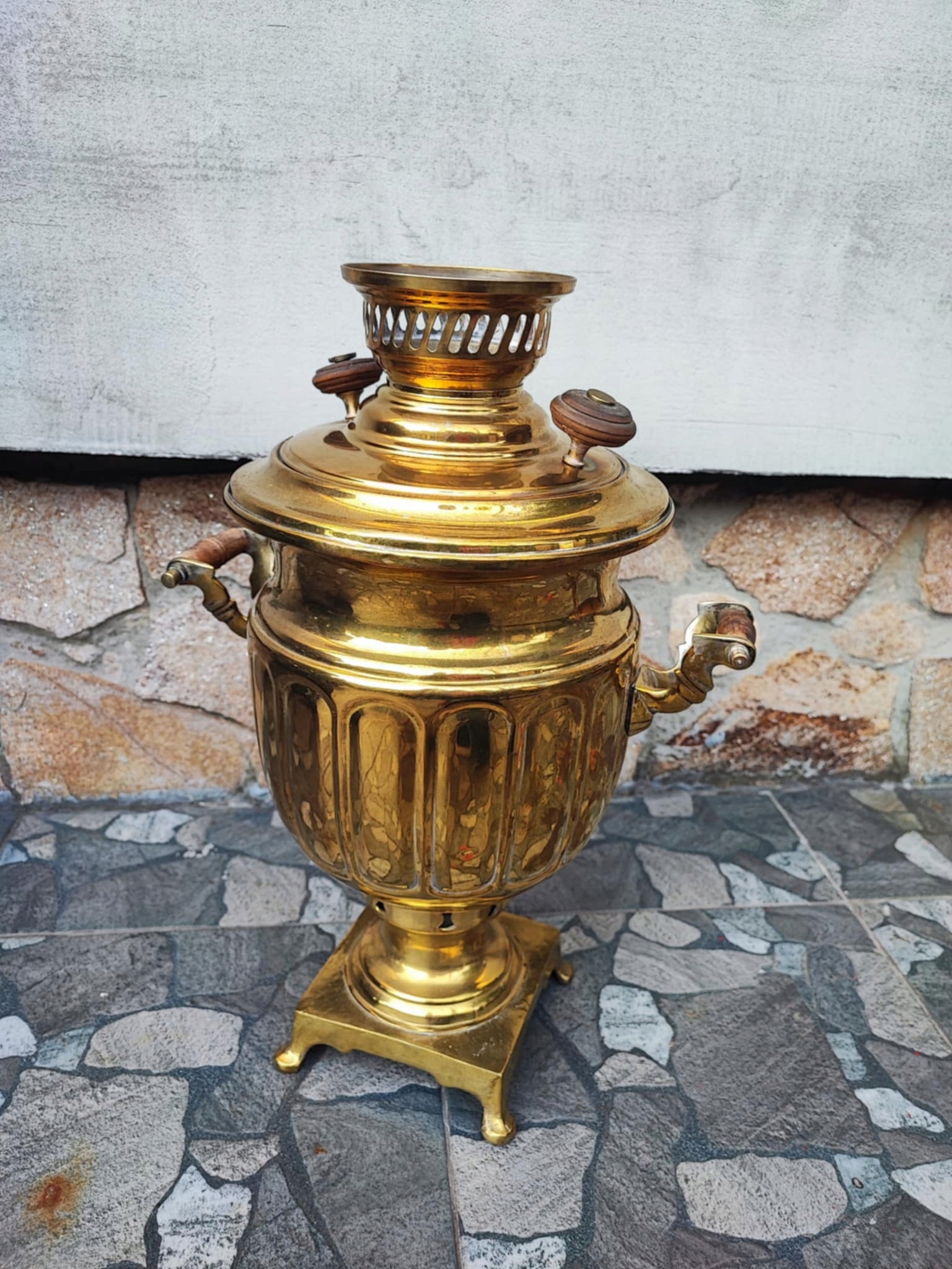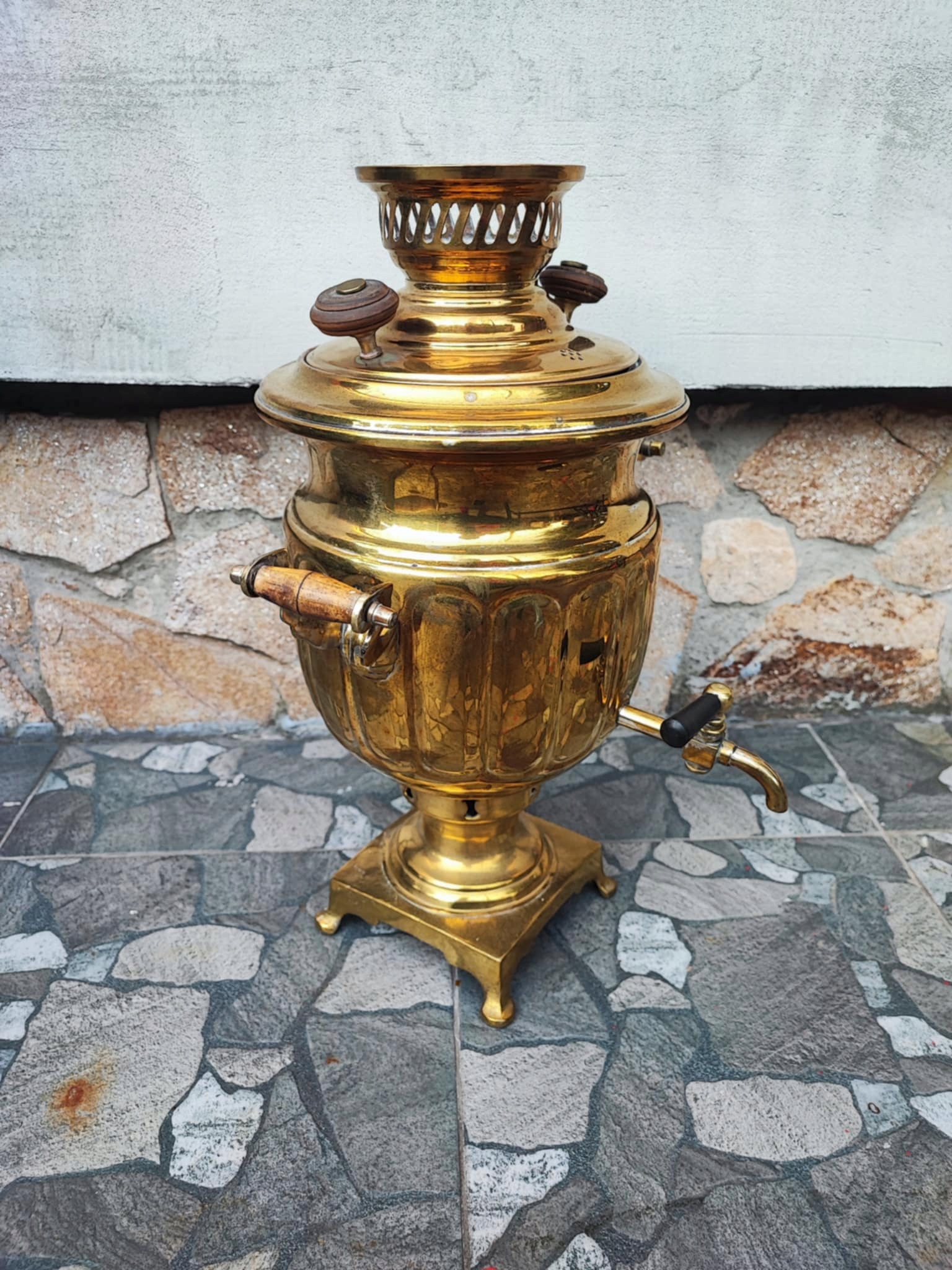 Przedwojenny mosiężny samowar Tuła,na węgiel drzewny,wymiary wys.45 cm.szer.31 cm.gł.30 cm.idealny do użytku,na wystrój,na prezent,na innych moich aukcjach znajdziesz inne bombonierki,kurki z huty Ząbkowice,aplikacje,kilimy,szyldy klamki,szyldy do mebli,karnisze,klosze oraz wszystko co ci potrzebne do lamp,lampek,żyrandoli,kinkietów,lamp naftowych,zobacz inne moje aukcje,wystawiam ok.4800 aukcji,wszystko jak na zdjęciach