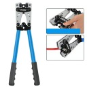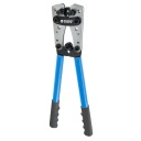 Dodatkowo, zaciskarka została zaprojektowana do obsługi przy użyciu obu rąk, co zwiększa stabilność i pozwala na precyzyjne zaciskanie nawet grubych przewodów.