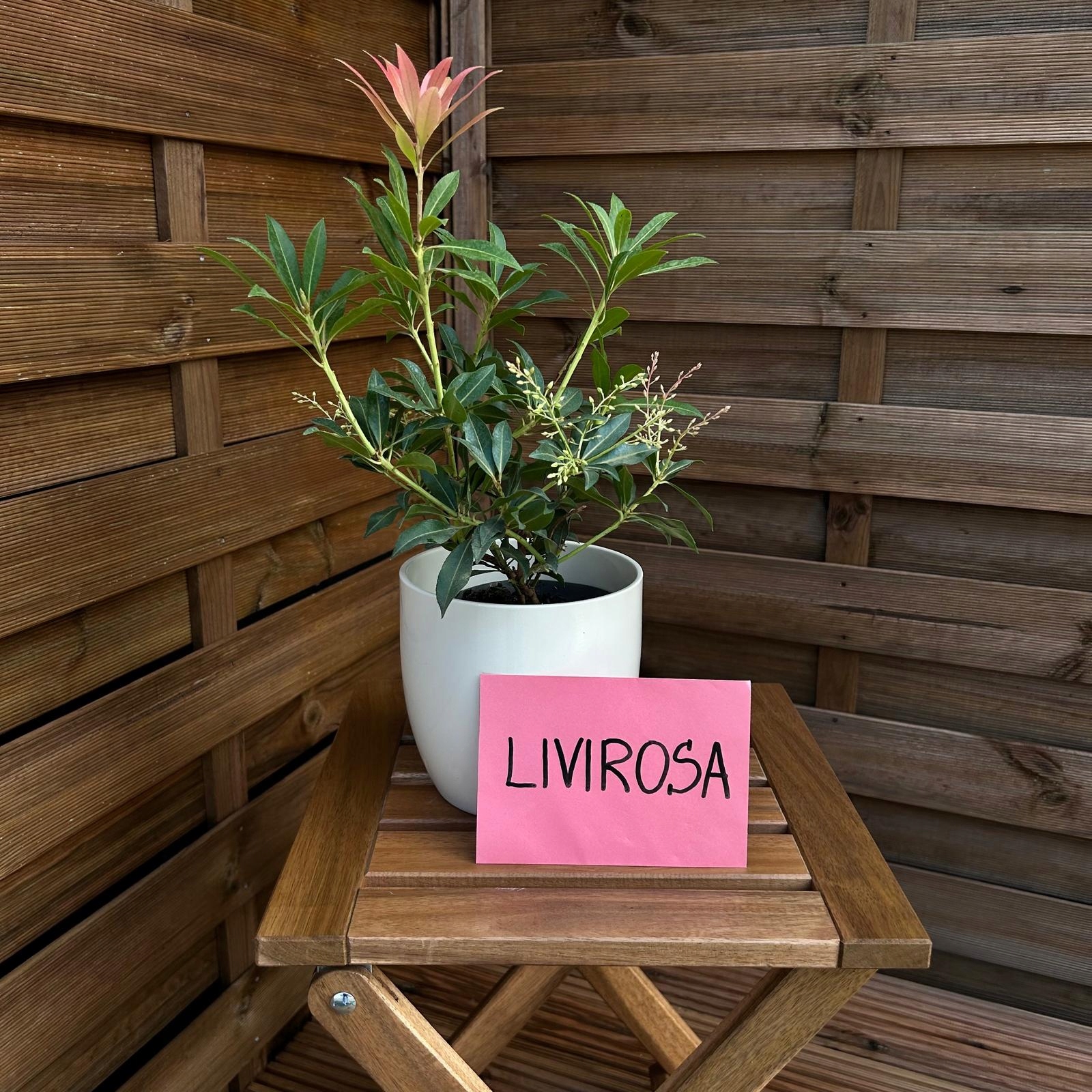 'Forest Flame' to jedna z najpiękniejszych i najbardziej efektownych odmian pierisa japońskiego. Zachwyca przez cały rok – wiosną młode przyrosty mają intensywnie czerwony kolor, który z czasem przechodzi w róż, a później w elegancką, głęboką zieleń.