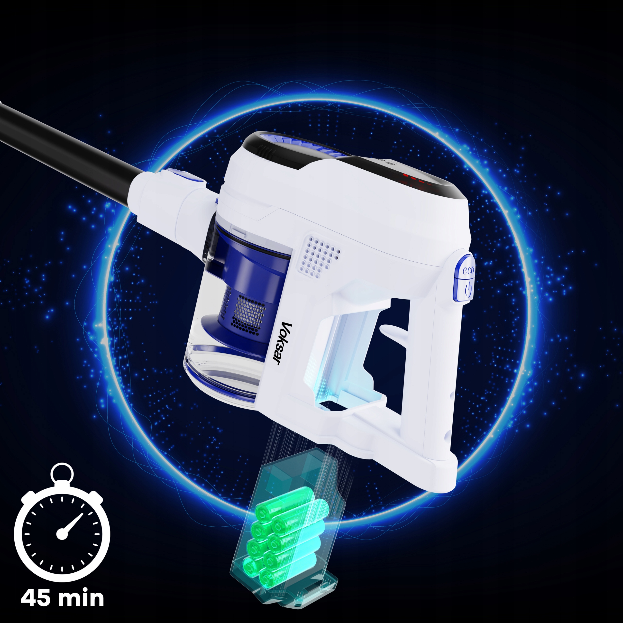 Bezprzewodowy Odkurzacz Voksar A11 – to rozwiązanie absolutnie wszystkich problemów czystego domu. To markowy sprzęt najwyższej klasy za bardzo dobre pieniądze – płacisz raz i jesteś o wielki krok bliżej do zawsze czystego domu. Urządzenie waży nieco ponad 2 kilogramy. W dodatku koniec z targaniem rury, ciężkiego korpusu i szarpaniem się z kablami, bo całość możesz zawiesić na ścianie w chwilę. A jak pracuje? Jak Twój odkurzacz na kabel: wciąga wszystko na co najedziesz.