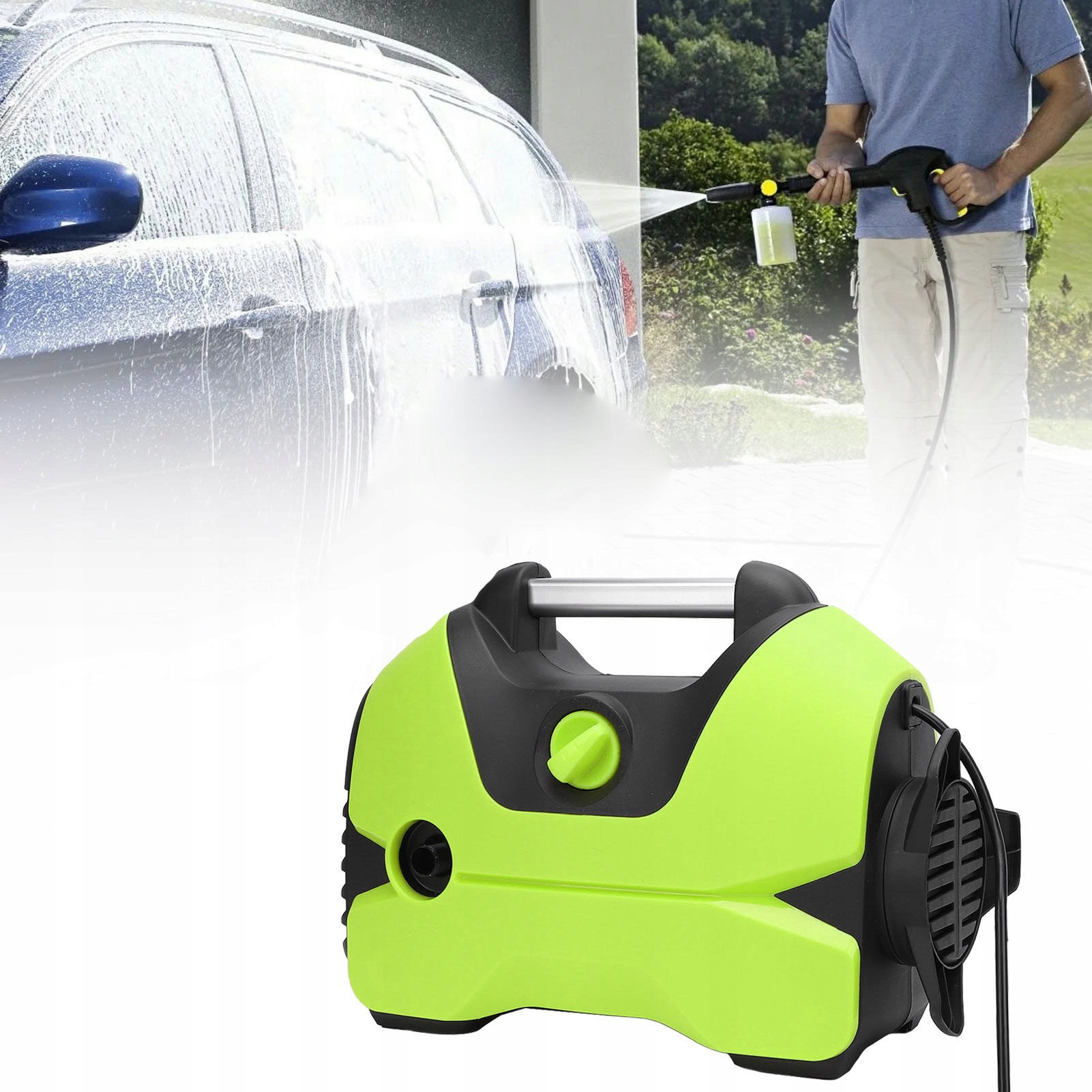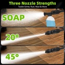 2. Szybkie podłącz dysze i armaty z pianki: wyposażone w szybkie dysze podłączające do mocnego kierunkowego strumienia wody w celu skutecznego czyszczenia. Dołączony garnek z pianki wytwarza bogatą, gęstą piankę, odpowiednią do mycia samochodów i łatwego usuwania brudu powierzchniowego.