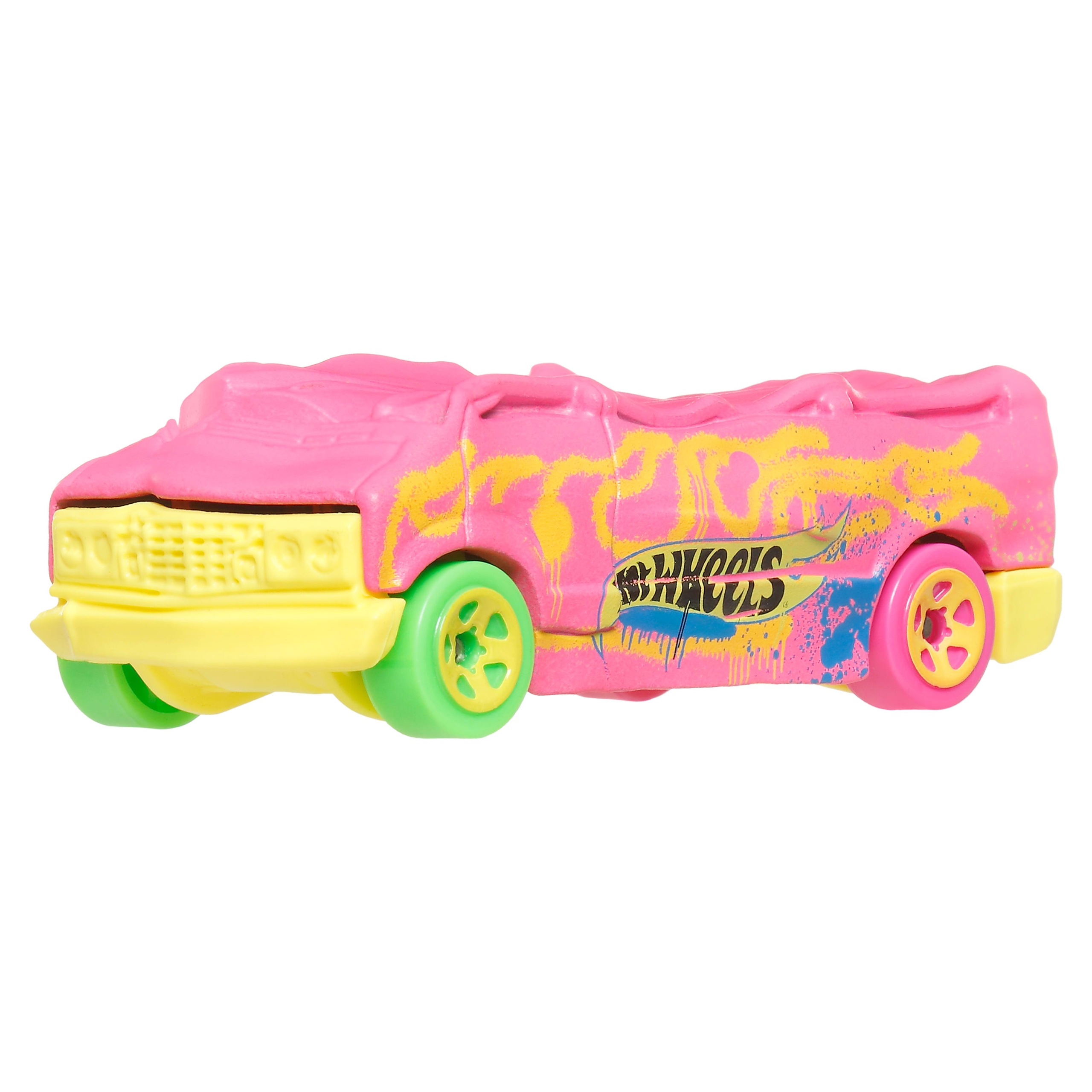 Pojazd marki Hot Wheels z serii Monster Trucks ma wysokie zawieszenie i ogromne koła. Autko mierzy ok. 9 cm długości i wykonane zostało z metalu oraz plastikowych elementów.