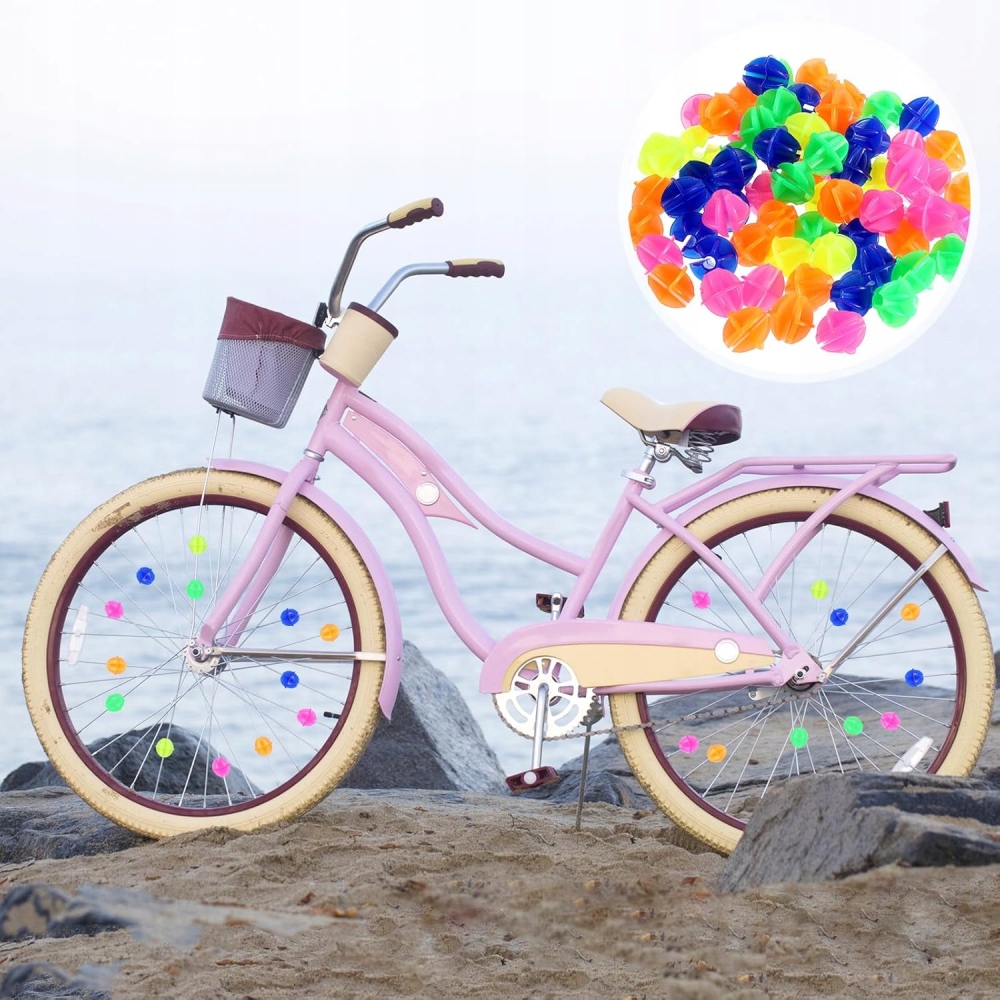 Ten zestaw koralików na szprychy rowerowe zawiera 144 kolorowych elementów: 36 okrągłych koralików light-up, 108 stałych koralików o okrągłym kształcie.