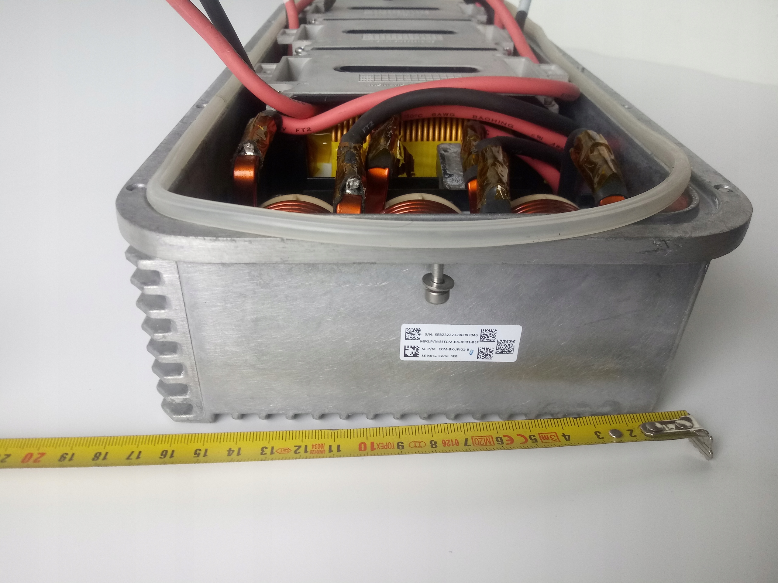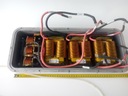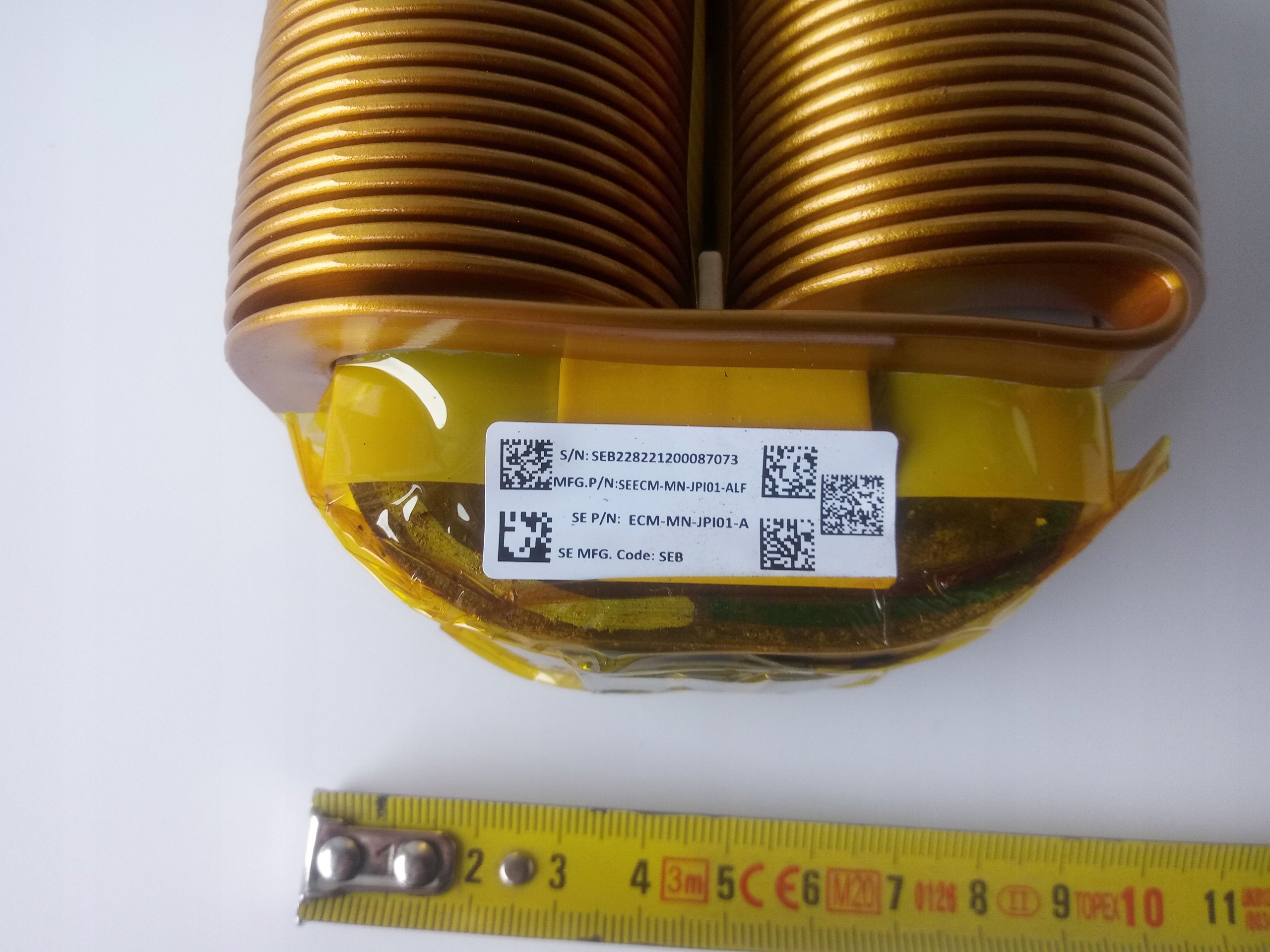 Duży filtr sieciowy trójfazowy SEECM-BK-JPI01-BLF, składający się z trzech dławików jednofazowych oraz jednego dławika trójfazowego, napięcie pracy do 400V, wartość prądu nie jest określona przez producenta, ale raczej spora - na podstawie przekroju drutu nawojowego w dławikach (około 40 - 60A). Przekrój drutu nawojowego w dławiku jednofazowym 1,9 x 10mm. Przekrój drutu nawojowego w dławiku trójfazowym 3x9mm. Sprawdzony stan izolacji. W zestawie uszczelka. Masa urządzenia 11kg. Urządzenie przetestowane sprawne.