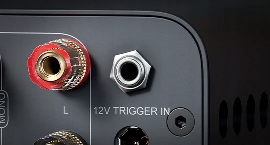 Dzięki funkcji triggera, wzmacniacz włącza się i wyłącza razem z resztą zestawu – wygodnie i bez kabli sterujących.