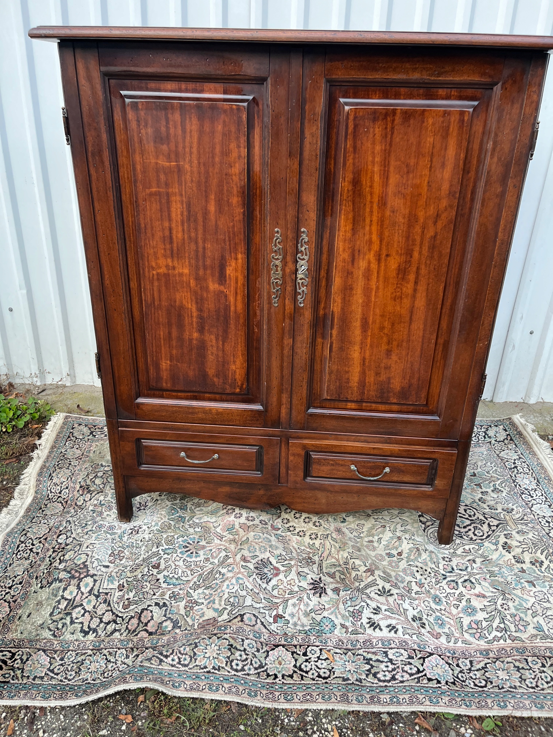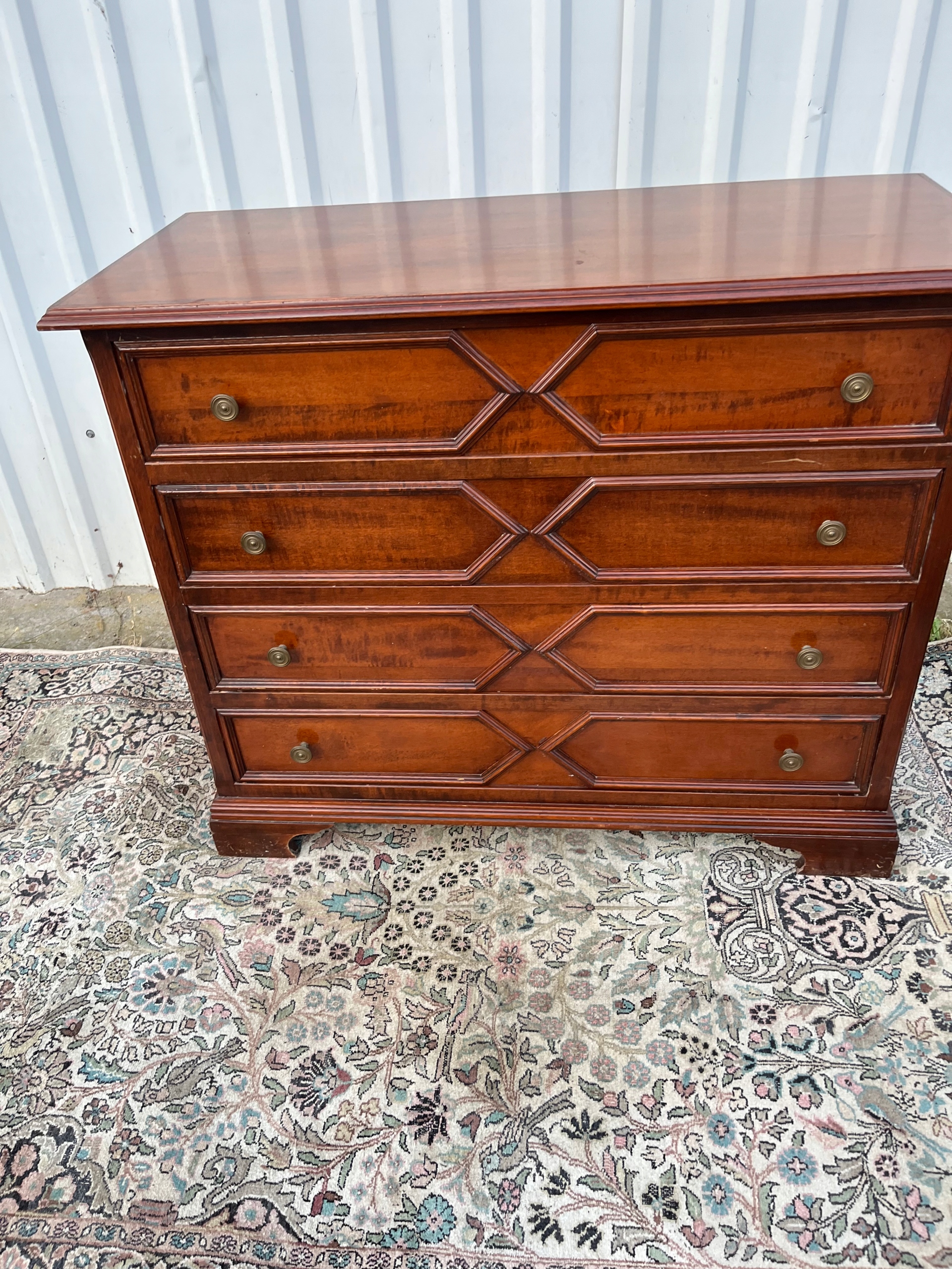 komoda w całości z drewna egzotycznego widoczne na zdjęciach , mebel ładny w stanie bardzo dobrym nie wymagającym renowacji , w całości z drewna . wym 102 x 59 cm , wys 135 cm , Komplecie zamki i kluczyki .