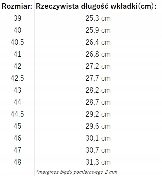 ZA DOBÓR PRAWIDŁOWEGO ROZMIARU ZAWSZE ODPOWIADA KUPUJĄCY.
