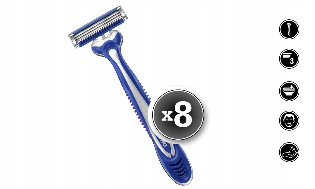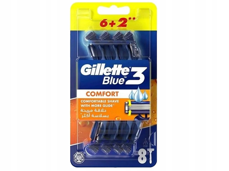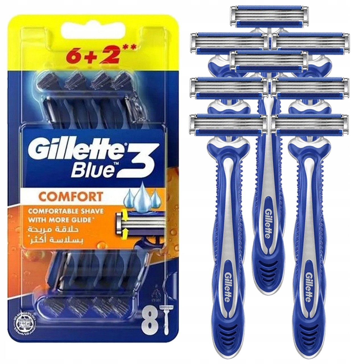 Одноразовая машинка, которая обеспечивает до 10 комфортные голени? Это стало возможным благодаря бритве Gillette Blue3 с 3 хромированными лезвиями следуя контуру лица и движущейся головке, которая соответствует формам лица. Ей активированная водой увлажняющая полоска Lubrastrip обеспечивает плавное скольжение. Устройство оснащено нескользящая резиновая ручка для лучшего контроля, а также легко очищаемые лезвия обеспечивает 100% лучшую очистку (по сравнению с Blue II Plus).