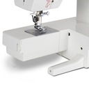 Lewą część pola pracy maszyny można swobodnie wysunąć, aby utworzyć tak zwane wolne ramię maszyny - dzięki temu mamy możliwość wygodnego obrzucenia nogawek spodni, mankietów, czy dekoltów.